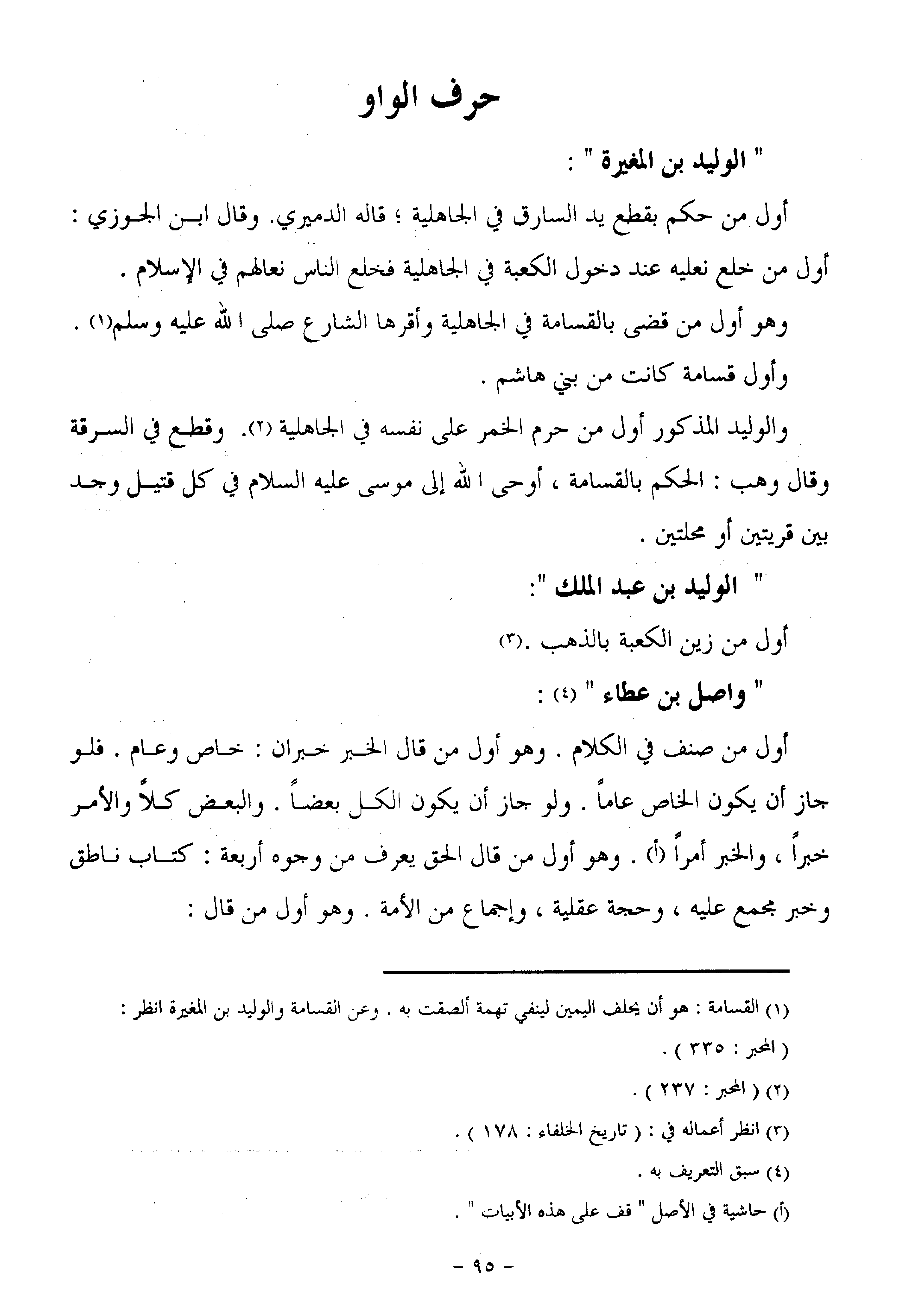 والوليد المذكور أول من حرم الخمر على نفسه في الجاهلية «2» . وقطع في السرقة وقال وهب: الحكم بالقسامة، أوحى الله إلى موسى عليه السلام في كل قتيل وجد بين قريتين أو محلتين.