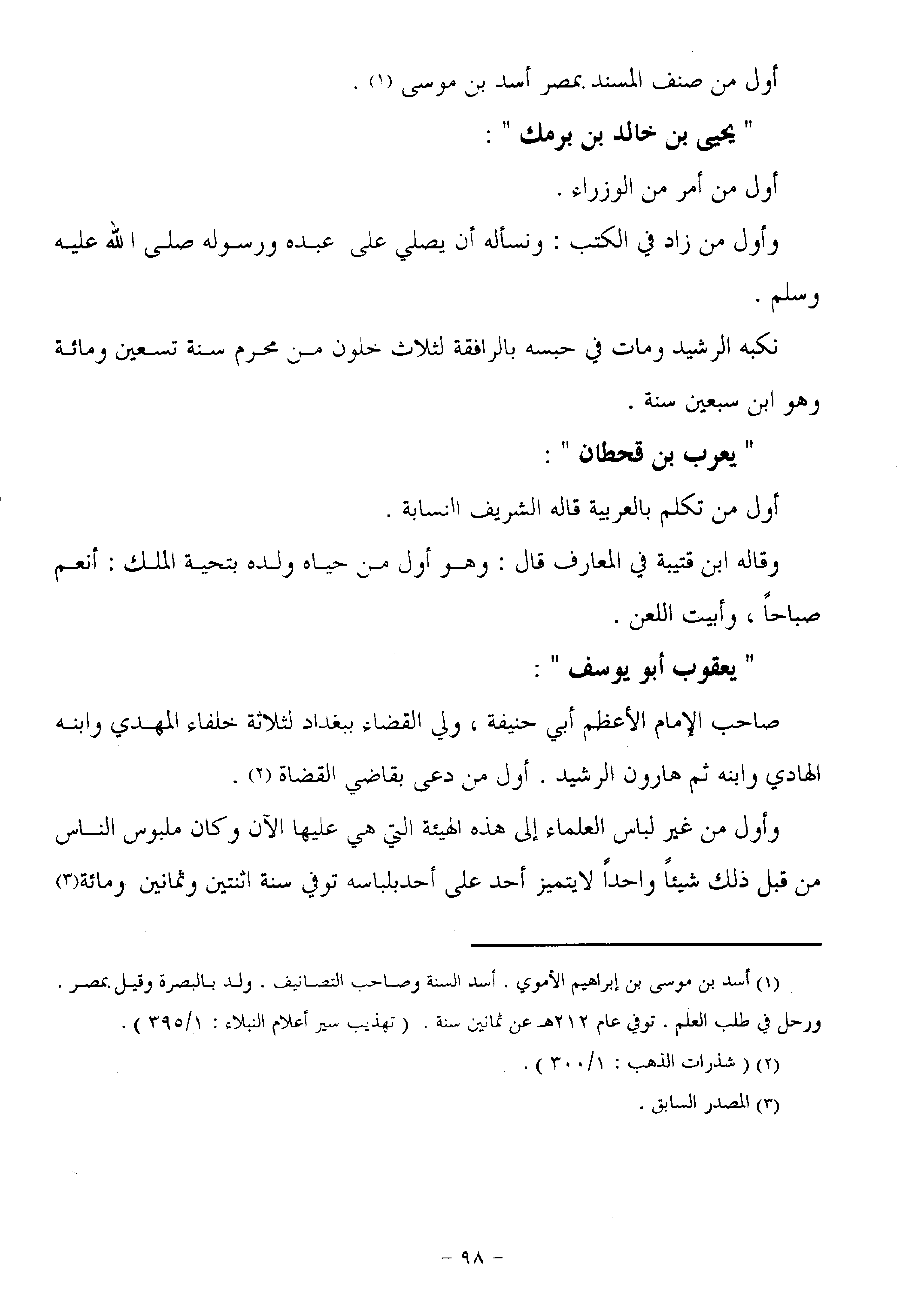 وأول من غير لباس العلماء إلى هذه الهيئة التي هي عليها الآن وكان ملبوس الناس من قبل ذلك شيئا واحدا لا يتميز أحد على أحد بلباسه توفي سنة اثنتين وثمانين ومائة «3»