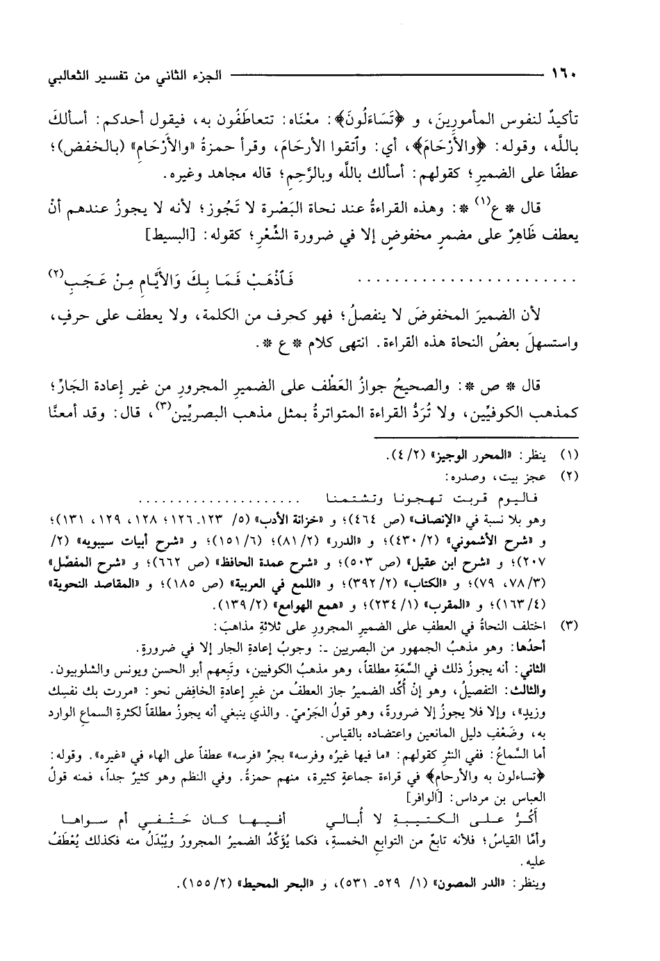 تَسائَلُونَ بِهِ وَالْأَرْحامَ في قراءة جماعة كثيرة، منهم حمزة. وفي النظم وهو كثير جدا، فمنه قول العباس بن مرداس: [الوافر]