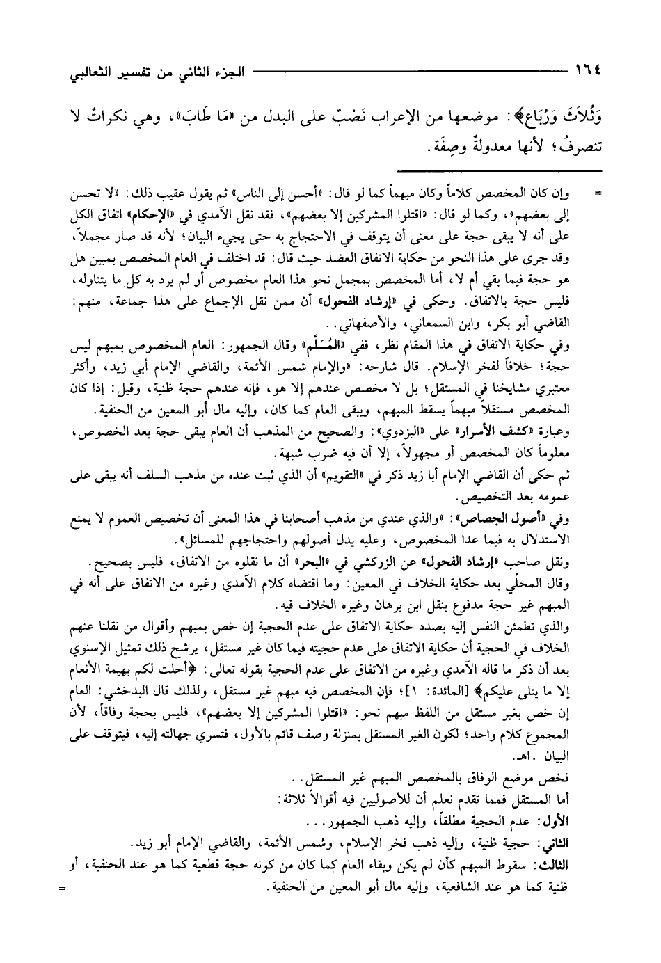 والذي تطمئن النفس إليه بصدد حكاية الاتفاق على عدم الحجية إن خص بمبهم وأقوال من نقلنا عنهم الخلاف في الحجية أن حكاية الاتفاق على عدم حجيته فيما كان غير مستقل، يرشح ذلك تمثيل الأسنوي بعد أن ذكر ما قاله الآمدي وغيره من الاتفاق على عدم الحجية بقوله تعالى: أُحِلَّتْ لَكُمْ بَهِيمَةُ الْأَنْعامِ إِلَّا ما يُتْلى عَلَيْكُمْ [المائدة: 1] فإن المخصص فيه مبهم غير مستقل، ولذلك قال البدخشي: العام إن خص بغير مستقل من اللفظ مبهم نحو: «اقتلوا المشركين إلا بعضهم» ، فليس بحجة وفاقا، لأن المجموع كلام واحد لكون الغير المستقل بمنزلة وصف قائم بالأول، فتسري جهالته إليه، فيتوقف على البيان. اهـ.