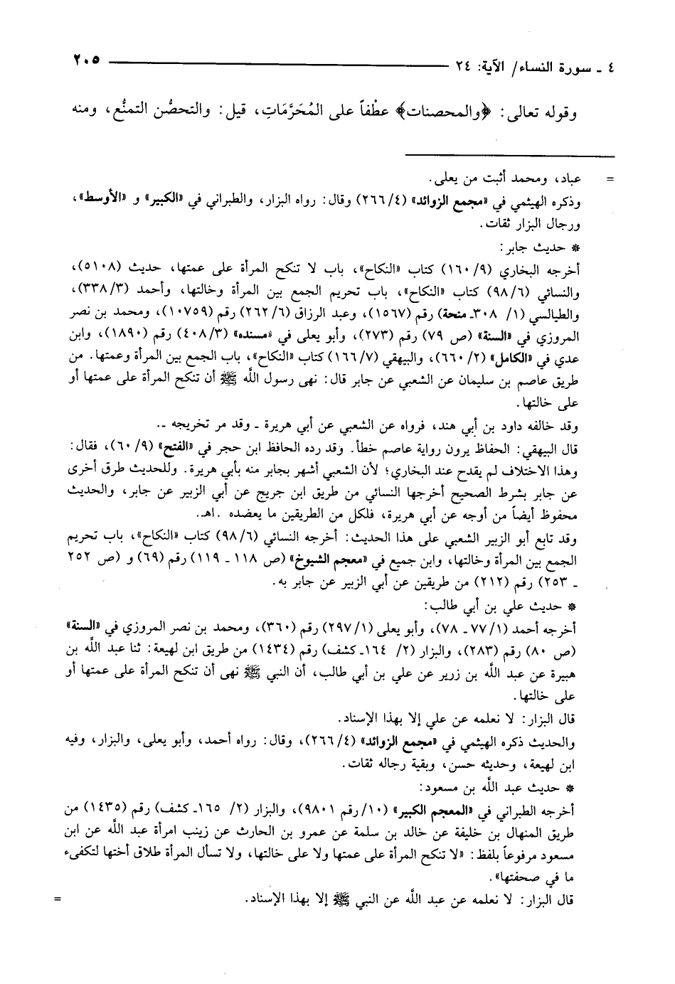 أخرجه البخاري (9/ 160) كتاب «النكاح» ، باب لا تنكح المرأة على عمتها، حديث (5108) ، والنسائي (6/ 98) كتاب «النكاح» ، باب تحريم الجمع بين المرأة وخالتها، وأحمد (3/ 338) ، والطيالسي (1/ 308- منحة) رقم (1567) ، وعبد الرزاق (6/ 262) رقم (10759) ، ومحمد بن نصر المروزي في «السنة» (ص 79) رقم (273) ، وأبو يعلى في «مسنده» (3/ 408) رقم (1890) ، وابن عدي في «الكامل» (2/ 660) ، والبيهقي (7/ 166) كتاب «النكاح» ، باب الجمع بين المرأة وعمتها. من طريق عاصم بن سليمان عن الشعبي عن جابر قال: نهى رسول الله صلّى الله عليه وسلّم أن تنكح المرأة على عمتها أو على خالتها.