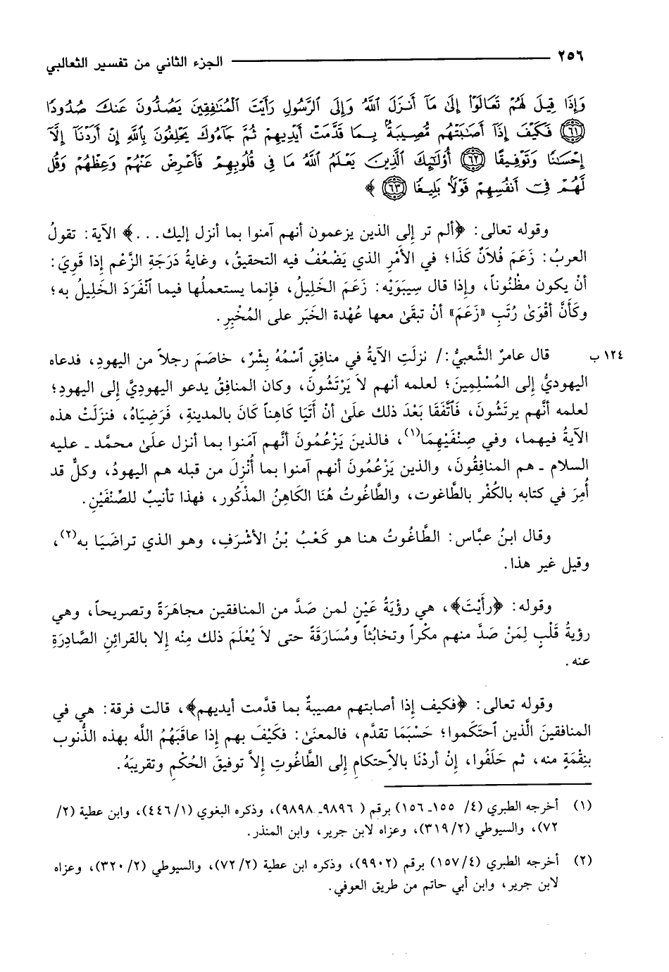 (2) أخرجه الطبري (4/ 157) برقم (9902) ، وذكره ابن عطية (2/ 72) ، والسيوطي (2/ 320) ، وعزاه لابن جرير، وابن أبي حاتم من طريق العوفي.