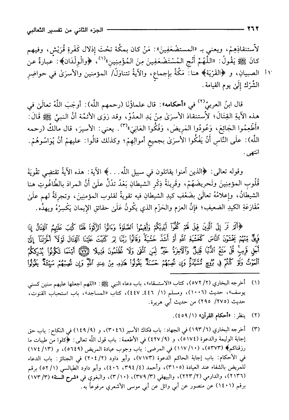 قال ابنُ العربيِّ «2» في «أحكامه» : قال علماؤُنَا (رحمهم اللَّه) : أوجَبَ اللَّهُ تعالى في هذه الآيةِ القِتَالَ لإستنقاذ الأسرى مِنْ يَدِ العدُوِّ، وقد روى الأئمّة أنّ النبيّ صلّى الله عليه وسلّم قَالَ: