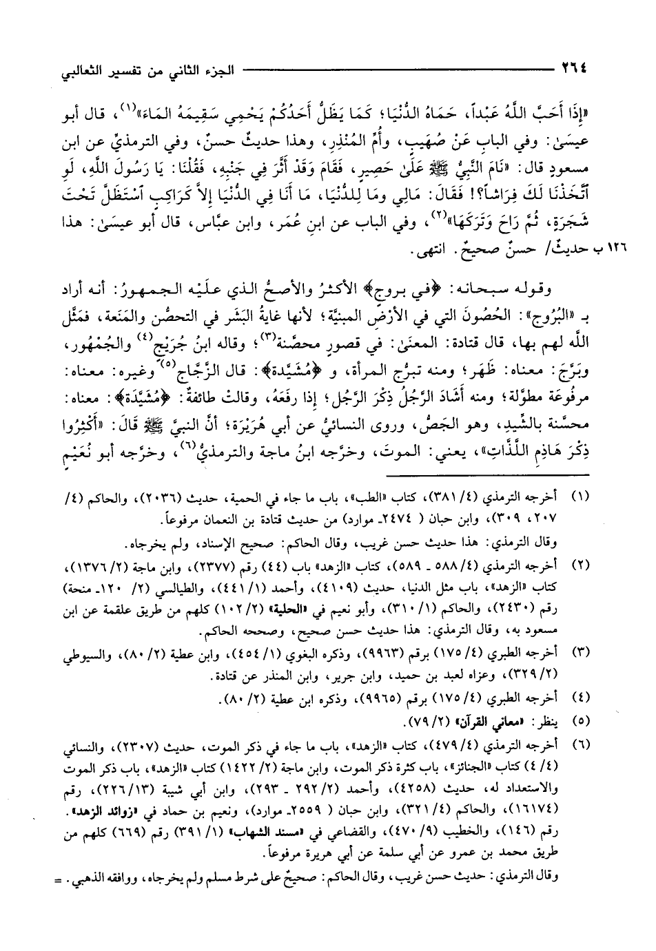 محسَّنة بالشِّيدِ، وهو الجَصُّ، وروى النسائيَّ عن أبي هُرَيْرَة أنَّ النبيَّ صلّى الله عليه وسلّم قَالَ: «أَكْثِرُوا ذِكْرَ هَاذِمِ اللَّذَّاتِ» ، يعني: الموتَ، وخرَّجه ابنُ ماجة والترمذيُّ «6» ، وخرَّجه أبو نُعَيْمٍ