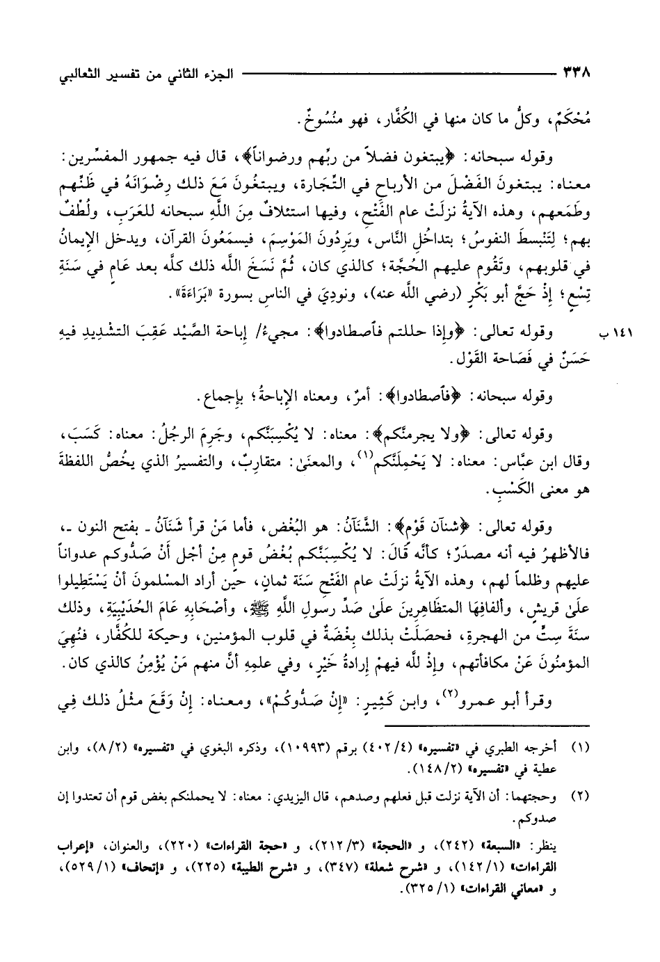 كتاب تفسير الثعالبي = الجواهر الحسان في تفسير القرآن (اسم الجزء: 2)