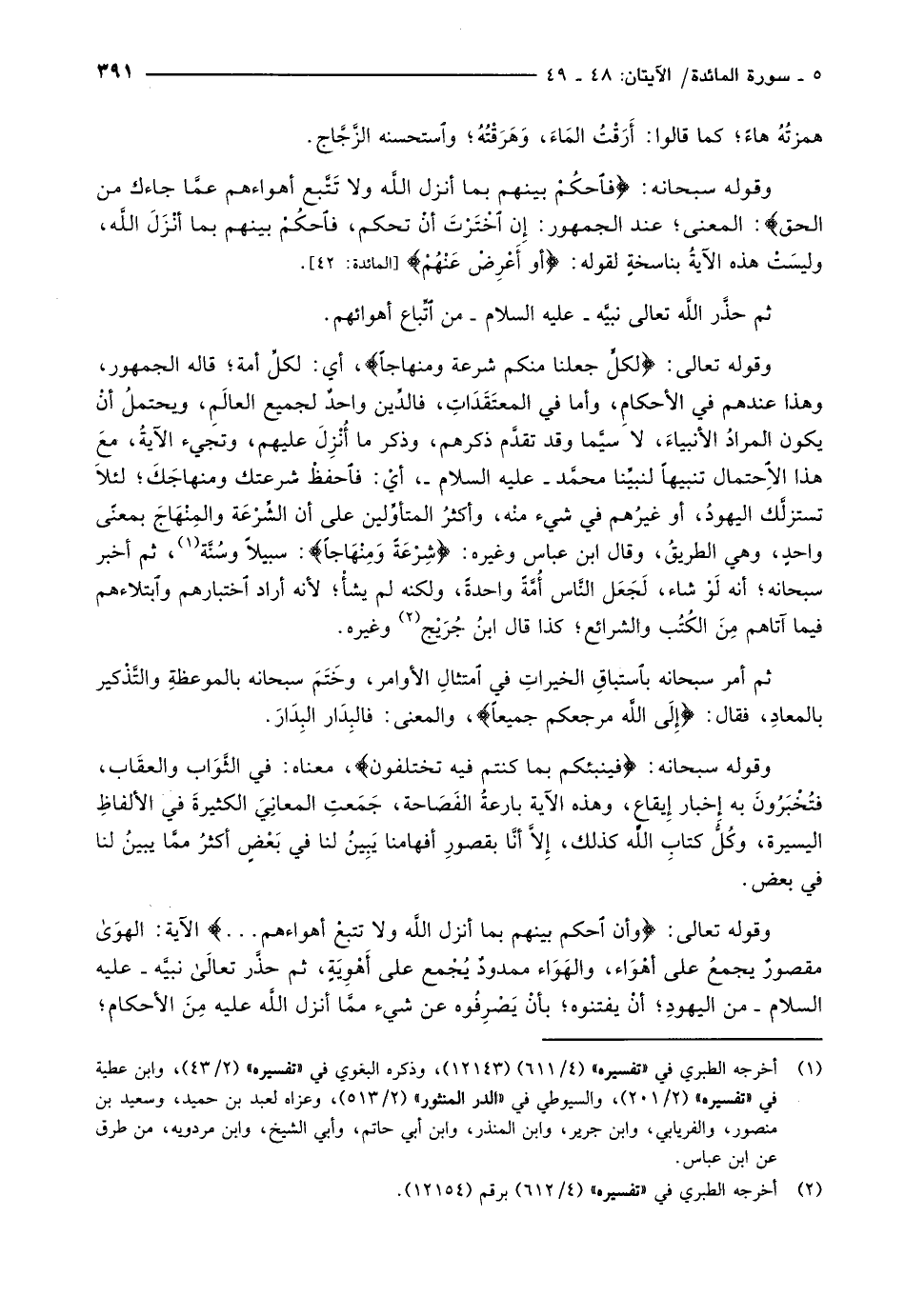 وقوله تعالى: وَأَنِ احْكُمْ بَيْنَهُمْ بِما أَنْزَلَ اللَّهُ وَلا تَتَّبِعْ أَهْواءَهُمْ ... الآية: الهوى مقصورٌ يجمعُ على أهْوَاء، والهَوَاء ممدودٌ يُجْمع على أَهْوِيَةٍ، ثم حذَّر تعالى نبيَّه- عليه السلام- من اليهودِ أنْ يفتنوه بأنْ يَصْرِفُوه عن شيء ممَّا أنزل الله عليه من الأحكام