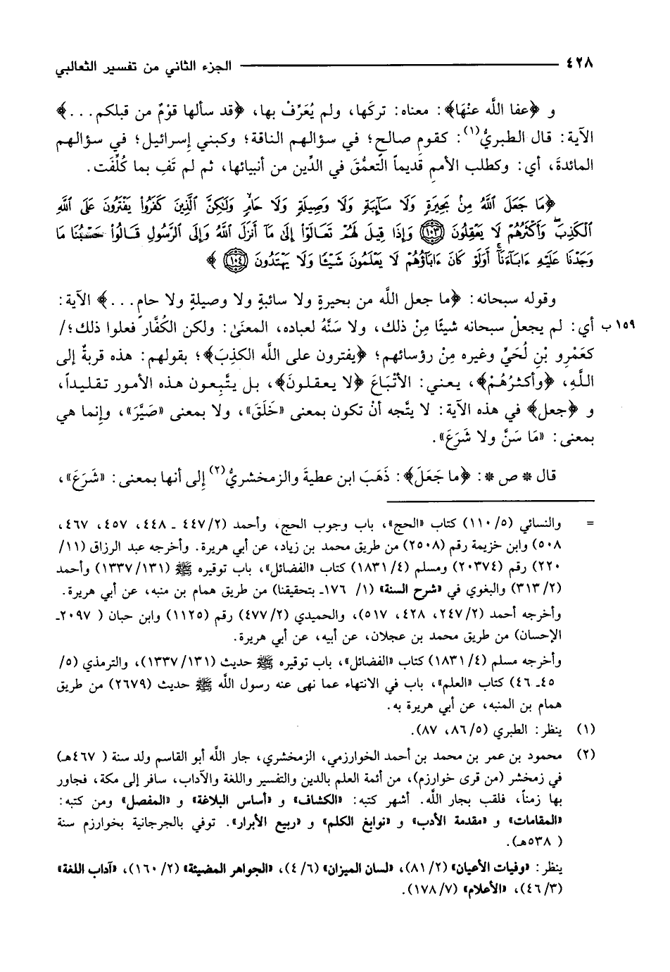 كتاب تفسير الثعالبي = الجواهر الحسان في تفسير القرآن (اسم الجزء: 2)