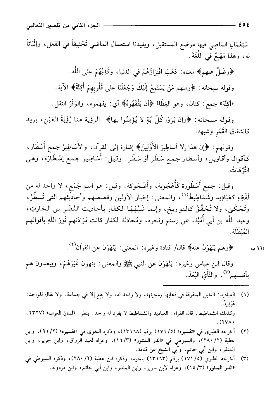 وقولهم: إِنْ هذا إِلَّا أَساطِيرُ الْأَوَّلِينَ إشارة إلى القرآن، والأَسَاطِيرُ جمع أَسْطَار، كأقوال وأقاويل، وأسطار جمع سَطْر أوْ سَطَر. وقيل: أَسَاطِير جمع إسْطَارَة، وهي التُّرَّهَاتُ.
