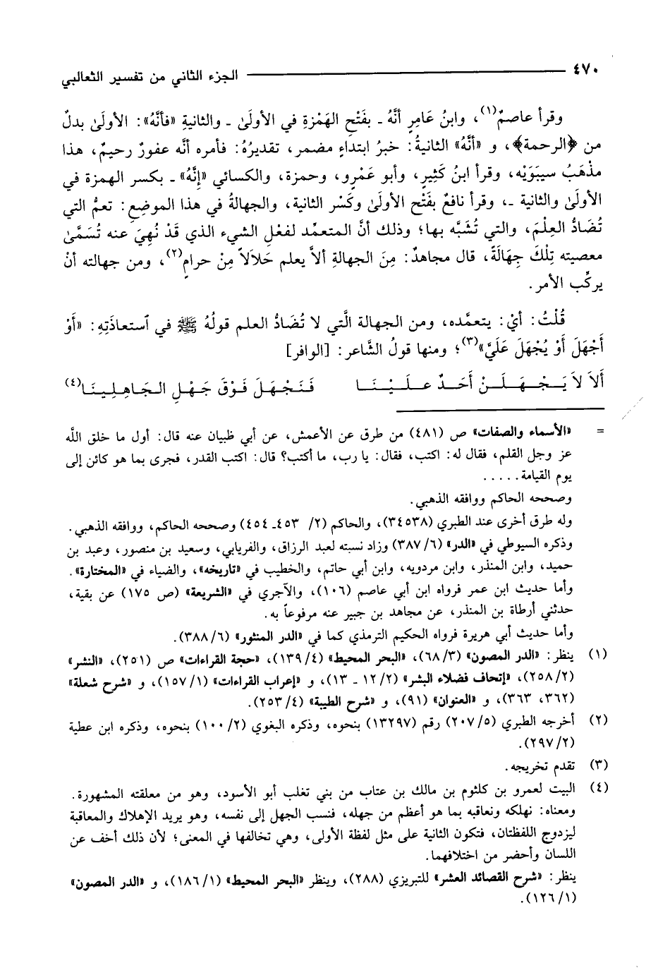 قُلْتُ: أيْ: يتعمَّده، ومن الجهالة الَّتي لا تُضَادُّ العلم قوله صلّى الله عليه وسلّم في استعاذته: «أَوْ أَجْهَلَ أَوْ يُجْهَلَ عَلَيَّ» «3» ومنها قولُ الشَّاعر: [الوافر]