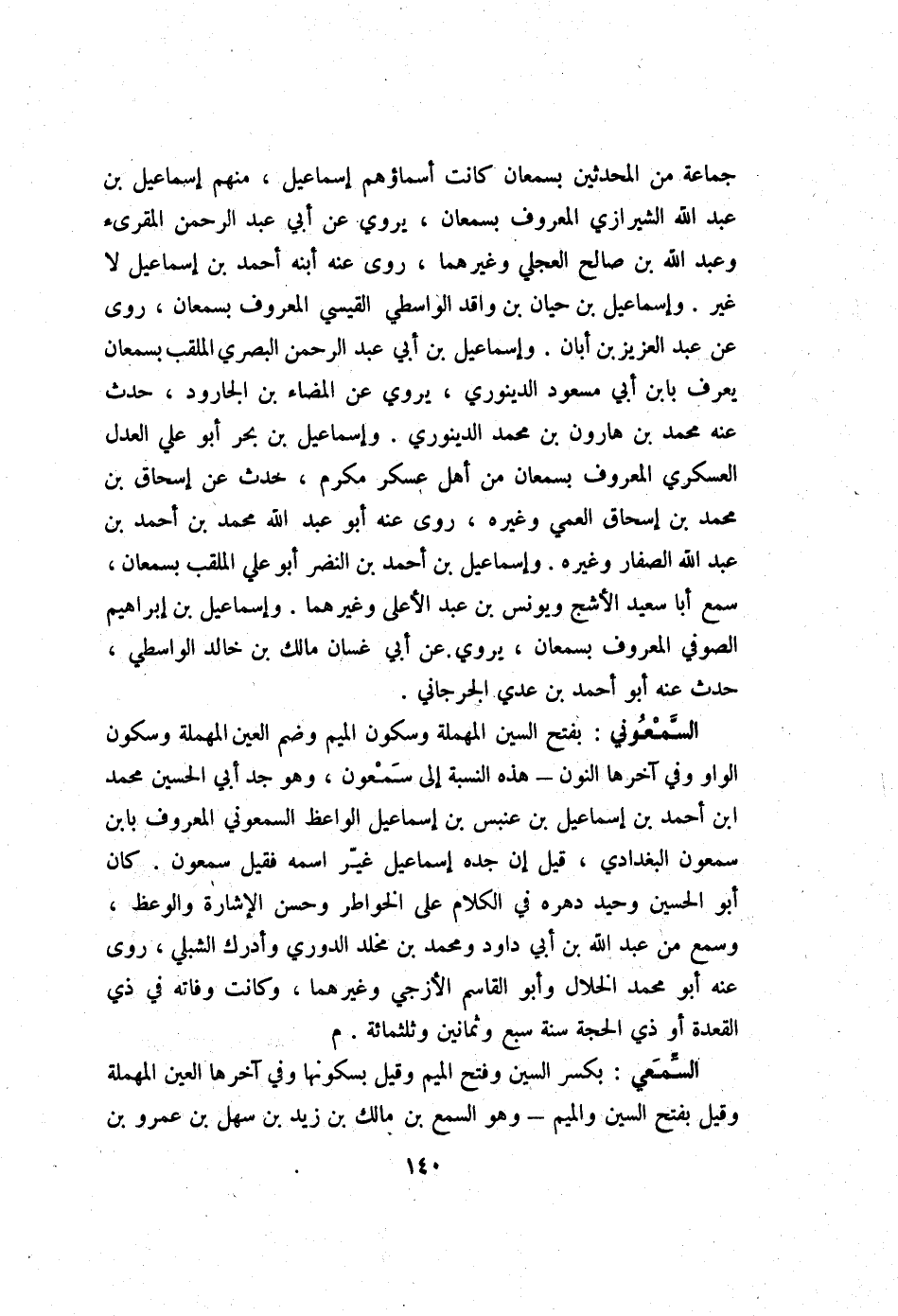 جمَاعَة من الْمُحدثين بسمعان كَانَت أَسمَاؤُهُم إِسْمَاعِيل مِنْهُم إِسْمَاعِيل بن عبد الله الشِّيرَازِيّ الْمَعْرُوف بسمعان يروي عَن أبي عبد الرَّحْمَن المقرىء وَعبد الله بن صَالح الْعجلِيّ وَغَيرهمَا روى عَنهُ ابْنه أَحْمد بن إِسْمَاعِيل لَا غير وَإِسْمَاعِيل بن حَيَّان بن وَاقد الوَاسِطِيّ الْقَيْسِي الْمَعْرُوف بسمعان روى عَن عبد الْعَزِيز بن أبان وَإِسْمَاعِيل بن أبي عبد الرَّحْمَن الْبَصْرِيّ الملقب بسمعان يعرف بِابْن أبي مَسْعُود الدينَوَرِي يروي عَن المضاء بن الْجَارُود حدث عَنهُ مُحَمَّد بن هَارُون بن مُحَمَّد الدينَوَرِي وَإِسْمَاعِيل بن بَحر ابو عَليّ الْعدْل العسكري الْمَعْرُوف بسمعان من أهل عَسْكَر مكرم حدث عَن إِسْحَاق بن مُحَمَّد بن إِسْحَاق الْعمي وَغَيره روى عَنهُ أَبُو عبد الله مُحَمَّد بن أَحْمد بن عبد الله الصفار وَغَيره وَإِسْمَاعِيل بن أَحْمد بن النَّضر ابو عَليّ الملقب بسمعان سمع أَبَا سعيد الْأَشَج وَيُونُس بن عبد الْأَعْلَى وَغَيرهمَا وَإِسْمَاعِيل بن إِبْرَاهِيم الصُّوفِي الْمَعْرُوف بسمعان يروي عَن أبي غَسَّان مَالك بن خَالِد الوَاسِطِيّ حدث عَنهُ ابو أَحْمد بن عدي الْجِرْجَانِيّ