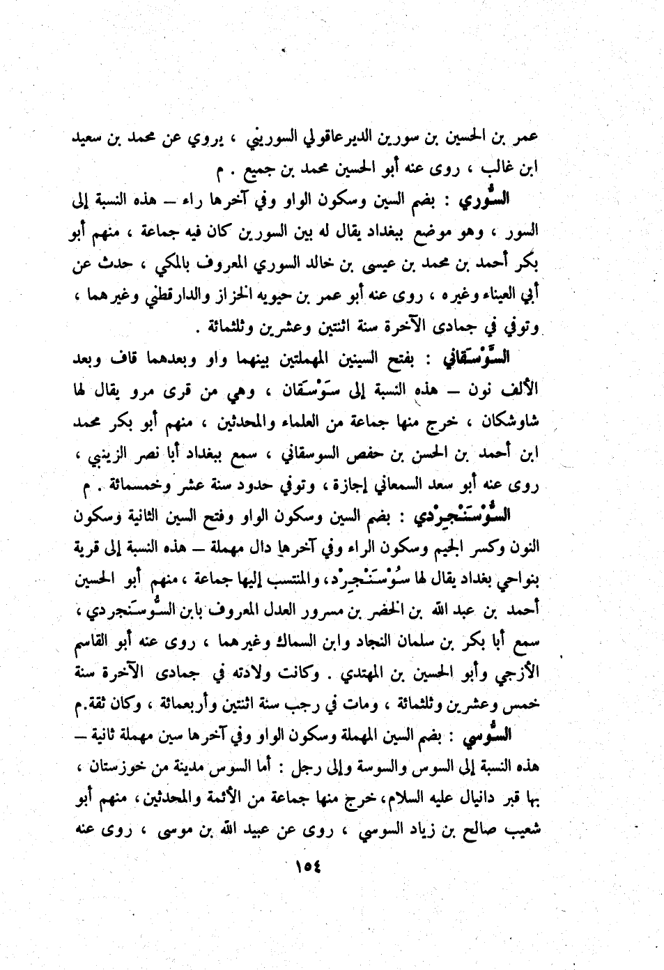 السُّوسِي بِضَم السِّين الْمُهْملَة وَسُكُون الْوَاو وَفِي آخرهَا سين مُهْملَة ثَانِيَة - هَذِه النِّسْبَة إِلَى السوس والسوسة وَإِلَى رجل أما السوس مَدِينَة من خوزستان بهَا قبر دانيال عَلَيْهِ السَّلَام خرج مِنْهَا جمَاعَة من الْأَئِمَّة والمحدثين مِنْهُم أَبُو شُعَيْب صَالح بن زِيَاد السُّوسِي روى عَن عبيد الله بن مُوسَى روى عَنهُ