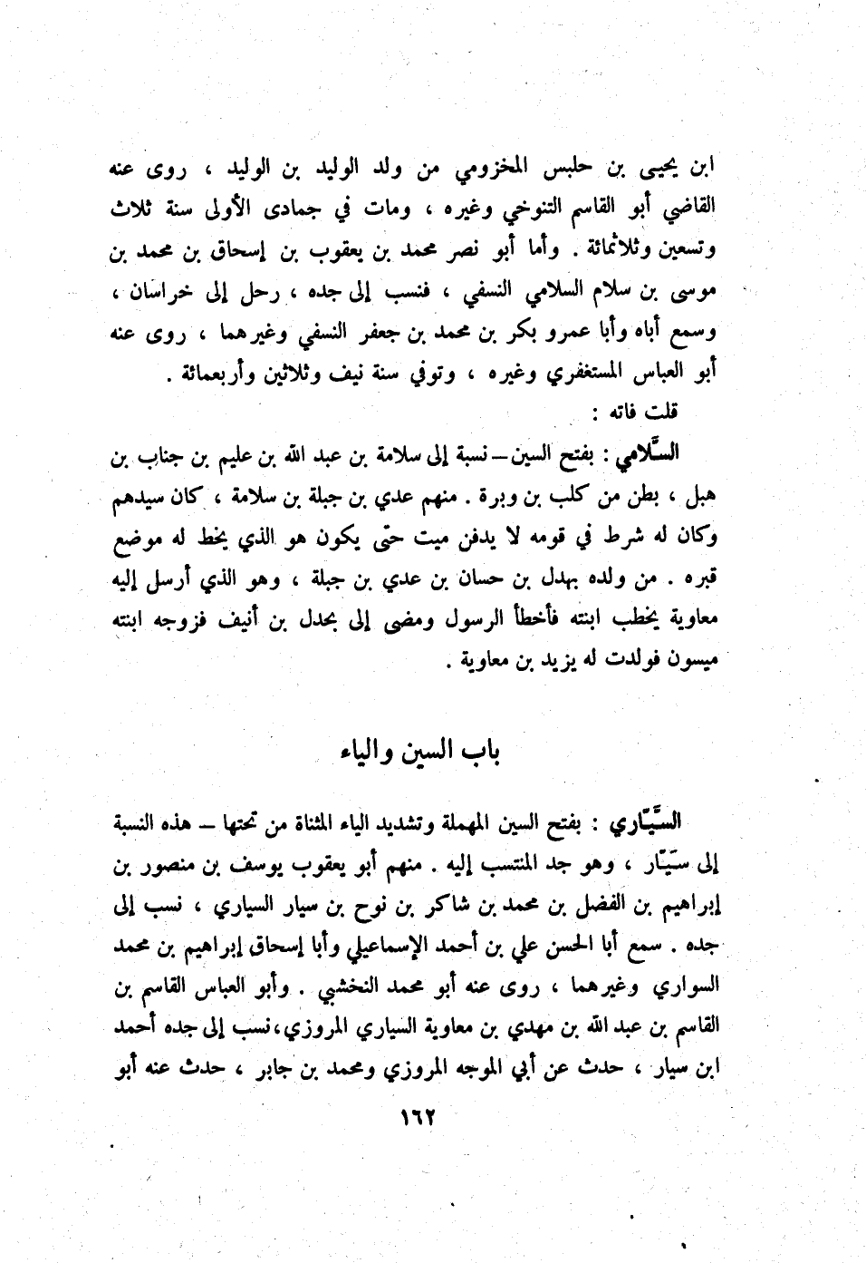 ابْن يحيى بن حَلبس المَخْزُومِي من ولد الْوَلِيد بن الْوَلِيد روى عَنهُ القَاضِي أَبُو الْقَاسِم التنوخي وَغَيره وَمَات فِي جُمَادَى الأولى سنة ثَلَاث وَتِسْعين وثلاثمائة وَأما أَبُو نصر مُحَمَّد بن يَعْقُوب بن إِسْحَاق بن مُحَمَّد بن مُوسَى بن سَلام السلَامِي النَّسَفِيّ فنسب إِلَى جده رَحل إِلَى خُرَاسَان وَسمع أَبَاهُ وَأَبا عَمْرو بكر بن مُحَمَّد بن جَعْفَر النَّسَفِيّ وَغَيرهمَا روى عَنهُ ابو الْعَبَّاس المستغفري وَغَيره وَتُوفِّي سنة نَيف وَثَلَاثِينَ وَأَرْبَعمِائَة