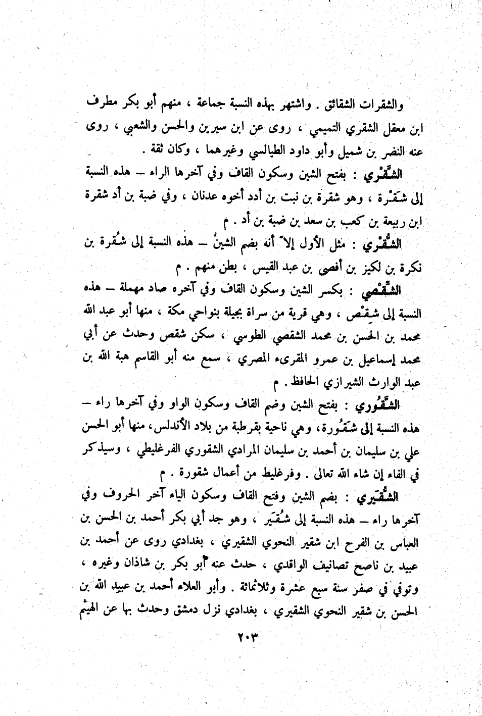 الشقري مثل الأول إِلَّا أَنه بِضَم الشين - هَذِه النِّسْبَة إِلَى شقرة بن نكرَة بن لكيز بن أفصى بن عبد الْقَيْس بطن مِنْهُم م