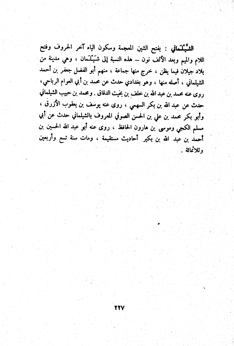 الشيلماني بِفَتْح الشين الْمُعْجَمَة وَسُكُون الْيَاء آخر الْحُرُوف وَفتح اللَّام وَالْمِيم وَبعد الْألف نون - هَذِه النِّسْبَة إِلَى شيلمان وَهِي مَدِينَة من بِلَاد جيلان فِيمَا يظنّ خرج مِنْهَا جمَاعَة مِنْهُم أَبُو الْفضل جَعْفَر بن أَحْمد الشيلماني أَصله مِنْهَا وَهُوَ بغدادي حدث عَن مُحَمَّد بن أبي الْعَوام الرباحي روى عَنهُ مُحَمَّد بن عبد الله بن خلف بن بخيت الدقاق وَمُحَمّد بن حبيب الشيلماني حدث عَن عبد الله بن بكر السَّهْمِي روى عَنهُ يُوسُف بن يَعْقُوب الْأَزْرَق وَأَبُو بكر مُحَمَّد بن عَليّ بن الْحسن الصُّوفِي الْمَعْرُوف بالشيلماني حدث عَن أبي مُسلم الْكَجِّي ومُوسَى بن هَارُون الْحَافِظ روى عَنهُ أَبُو عبد الله الْحُسَيْن بن أَحْمد بن عبد الله بن بكير أَحَادِيث مُسْتَقِيمَة وَمَات سنة تسع وَأَرْبَعين وثلاثمائة