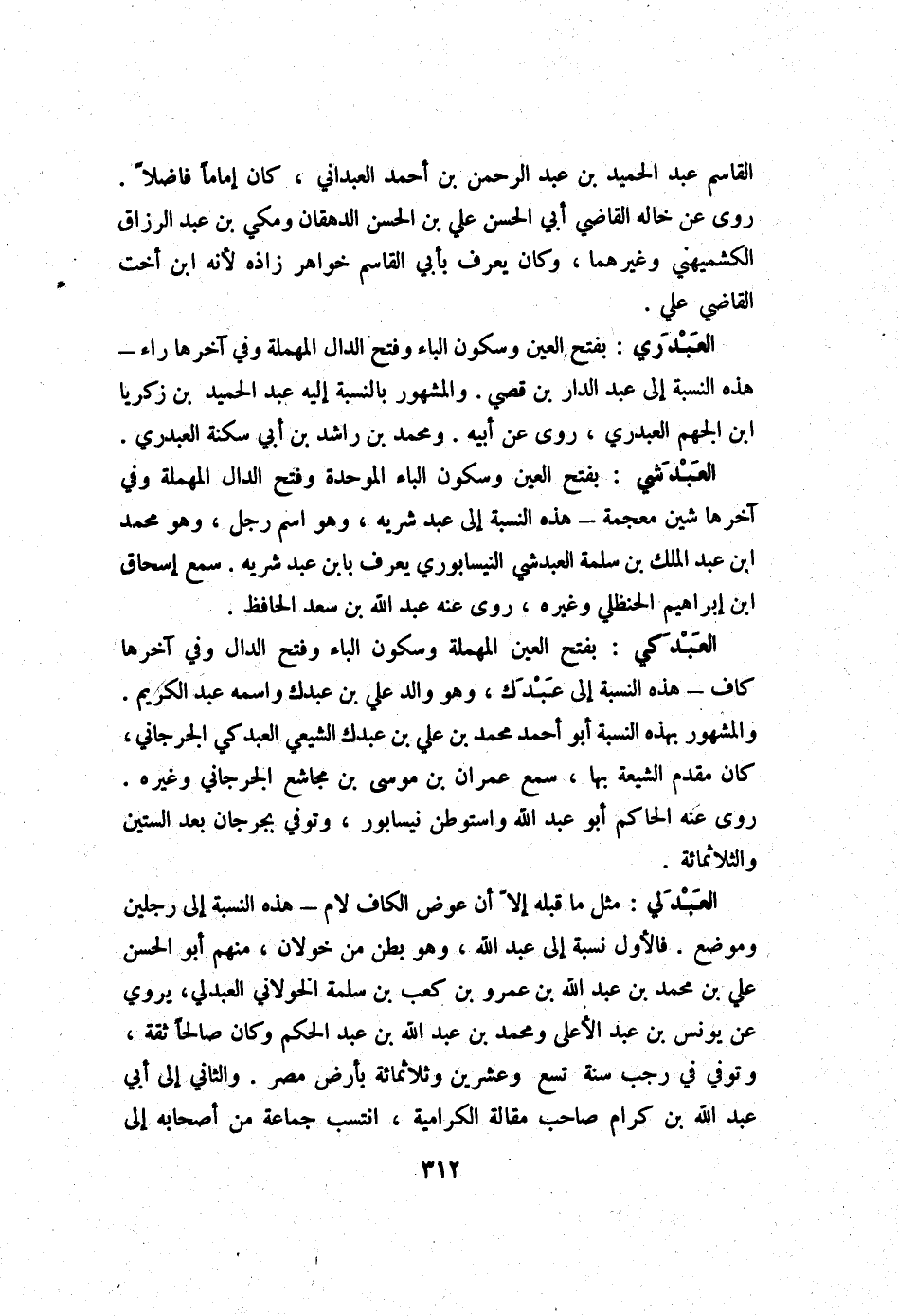 الْقَاسِم عبد الحميد بن عبد الرَّحْمَن بن أَحْمد العبداني كَانَ إِمَامًا فَاضلا روى عَن خَاله القَاضِي أبي الْحسن عَليّ بن الْحسن الدهْقَان ومكي بن عبد الرَّزَّاق الْكشميهني وَغَيرهمَا وَكَانَ يعرف بَابي الْقَاسِم خُوَاهَر زاذه لِأَنَّهُ ابْن أُخْت القَاضِي عَليّ