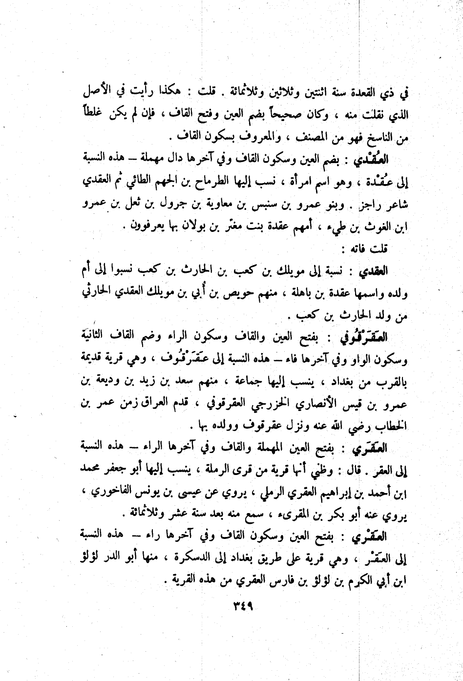 العقري بِفَتْح الْعين وَسُكُون الْقَاف وَفِي آخرهَا رَاء - هَذِه النِّسْبَة إِلَى الْعقر وَهِي قَرْيَة على طَرِيق بَغْدَاد إِلَى الدسكرة مِنْهَا ابو الدّرّ لُؤْلُؤ ابْن أبي الْكَرم بن لُؤْلُؤ بن فَارس العقري من هَذِه الْقرْيَة