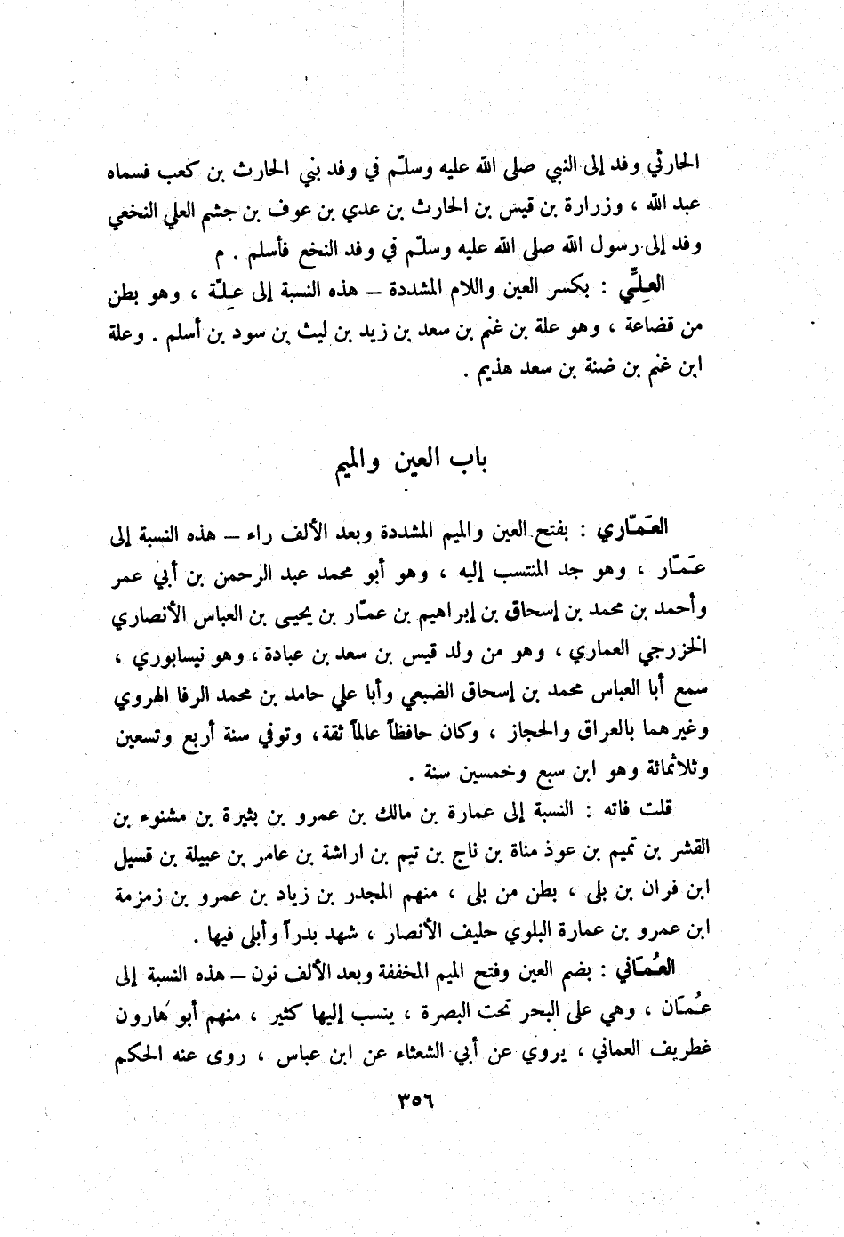 الْعمانِي بِضَم الْعين وَفتح الْمِيم المخففة وَبعد الْألف نون - هَذِه النِّسْبَة إِلَى عمان وَهِي على الْبَحْر تَحت الْبَصْرَة ينْسب إِلَيْهَا كثير مِنْهُم أَبُو هَارُون غطريف الْعمانِي يروي عَن أبي الشعْثَاء عَن ابْن عَبَّاس روى عَنهُ الحكم