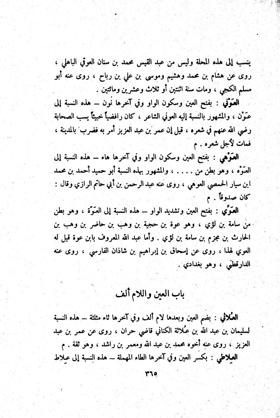 العوهي بِفَتْح الْعين وَسُكُون الْوَاو وَفِي آخرهَا هَاء - هَذِه النِّسْبَة إِلَى العوه وَهُوَ بطن من ... وَالْمَشْهُور بِهَذِهِ النِّسْبَة أَبُو حميد أَحْمد بن مُحَمَّد ابْن سيار الْحِمصِي العوهي روى عَنهُ عبد الرَّحْمَن بن أبي حَاتِم الرَّازِيّ وَقَالَ كَانَ صَدُوقًا م