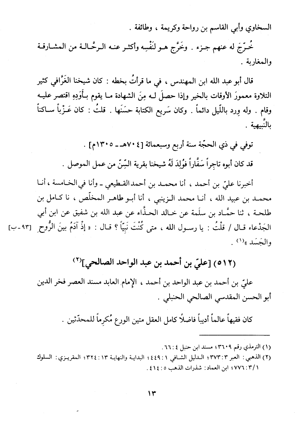 عَلِيُّ بْنُ أَحْمَدَ بْنِ عَبْدِ الْوَاحِدِ بْنِ أَحْمَدَ الإِمَامُ الْعَابِدُ مُسْنِدُ الْعَصْرِ فَخْرُ الدِّينِ أَبُو الْحَسَنِ الْمَقْدِسِيُّ الصَّالِحِيُّ الْحَنْبَلِيُّ