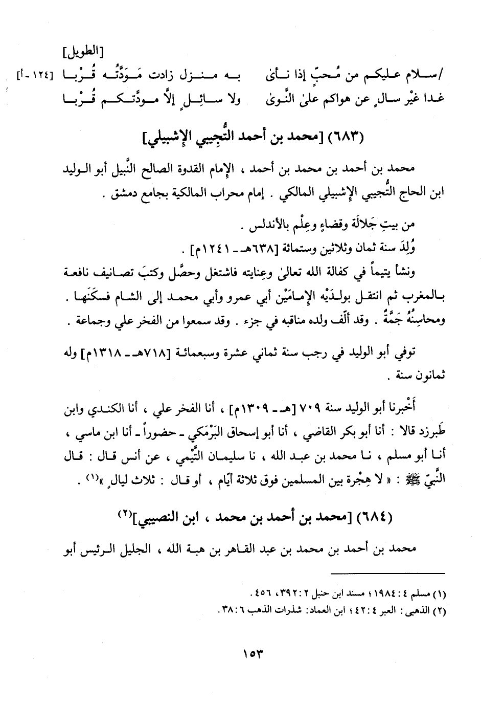 مُحَمَّدُ بْنُ أَحْمَدَ بْنِ مُحَمَّدِ بْنِ أَحْمَدَ الإِمَامُ الْقُدْوَةُ الصَّالِحُ النَّبِيلُ أَبُو الْوَلِيدِ ابْنُ الْحَاجِّ التُّجِيبِيُّ الإِشْبِيلِيُّ الْمَالِكِيُّ