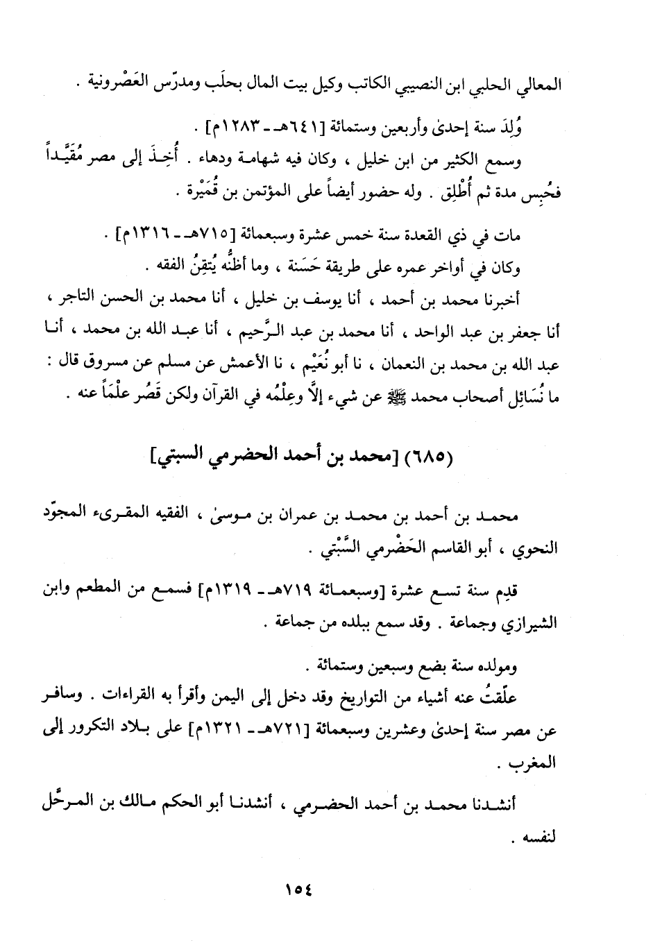 وَكِيلُ بَيْتِ الْمَالِ بِحَلَبَ وَمُدَرِّسُ الْعَصْرُونِيَّةِ وُلِدَ سَنَةَ إِحْدَى وَأَرْبَعِينَ وَسِتِّ مِائَةٍ.