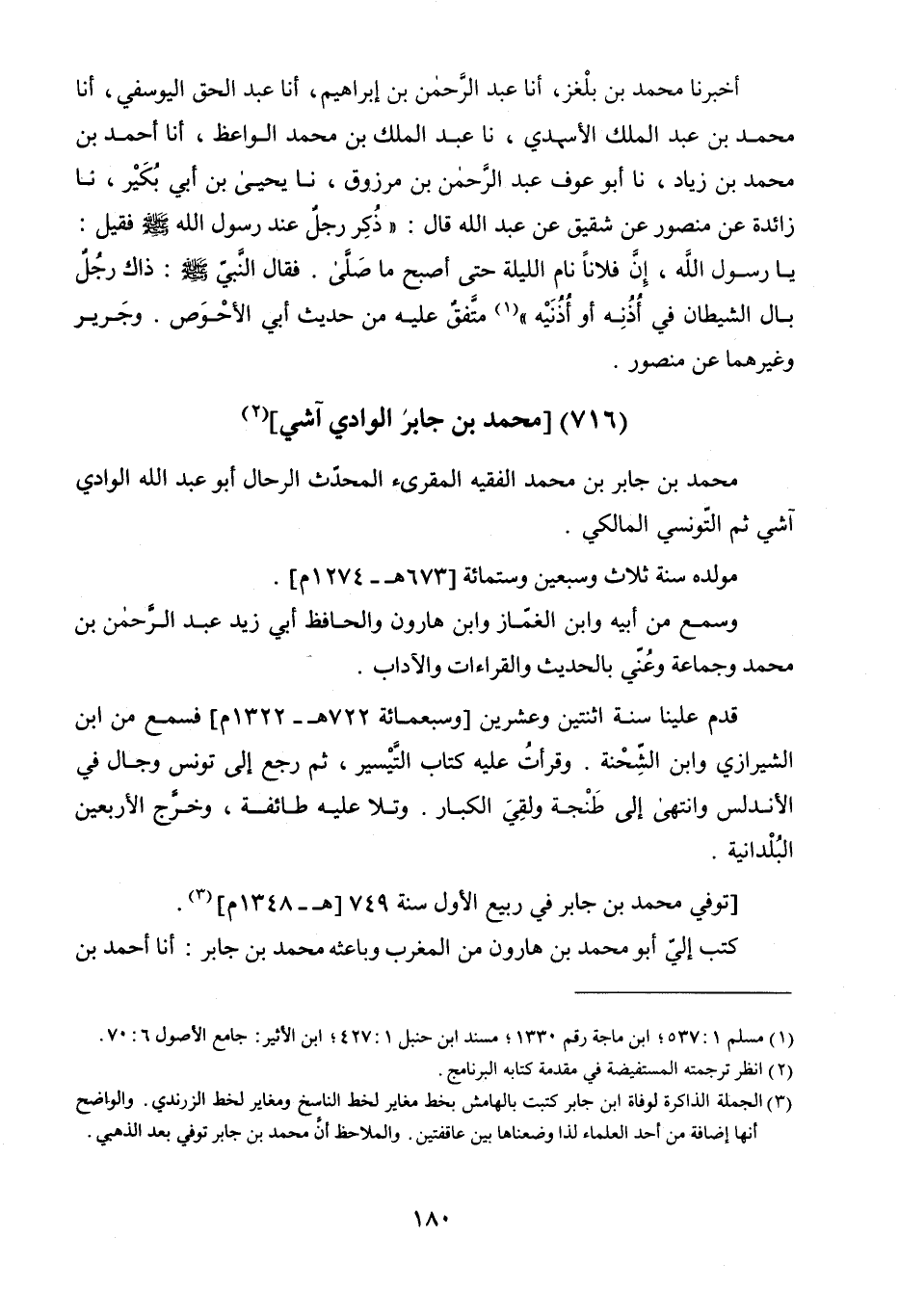 مُحَمَّدُ بْنُ جَابِرِ بْنِ مُحَمَّدٍ الْفَقِيهُ الْمُقْرِئُ الْمُحَدِّثُ الرَّحَّالُ أَبُو عَبْدِ اللَّهِ الْوَادِي آشِي ثُمَّ التُّونُسِيُّ الْمَالِكِيُّ