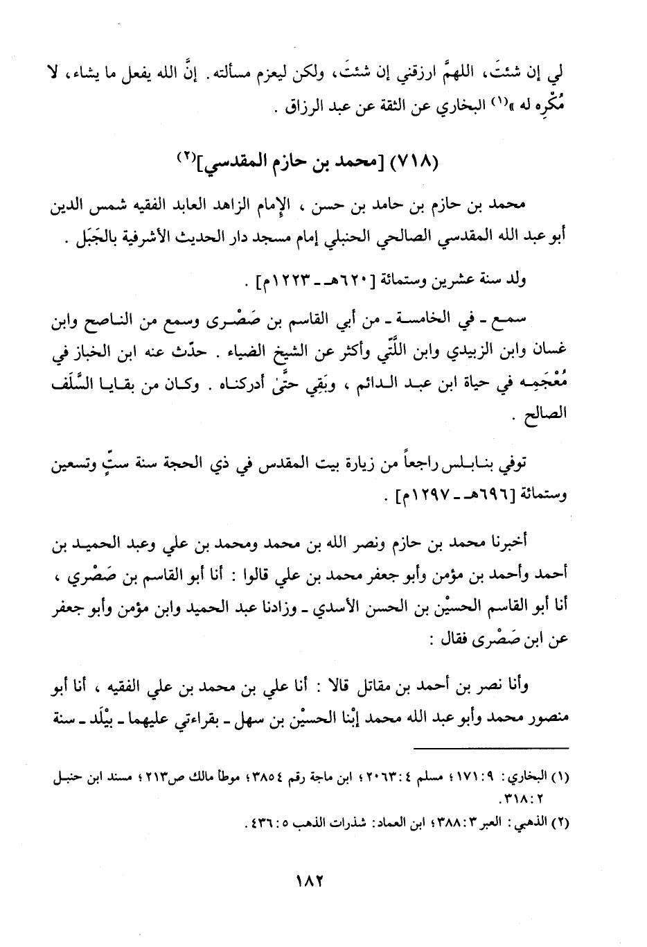 مُحَمَّدُ بْنُ حَازِمِ بْنِ حَامِدِ بْنِ حَسَنٍ الإِمَامُ الزَّاهِدُ الْعَابِدُ الْفَقِيهُ شَمْسُ الدِّينِ أَبُو عَبْدِ اللَّهِ الْمَقْدِسِيُّ الصَّالِحِيُّ الْحَنْبَلِيُّ