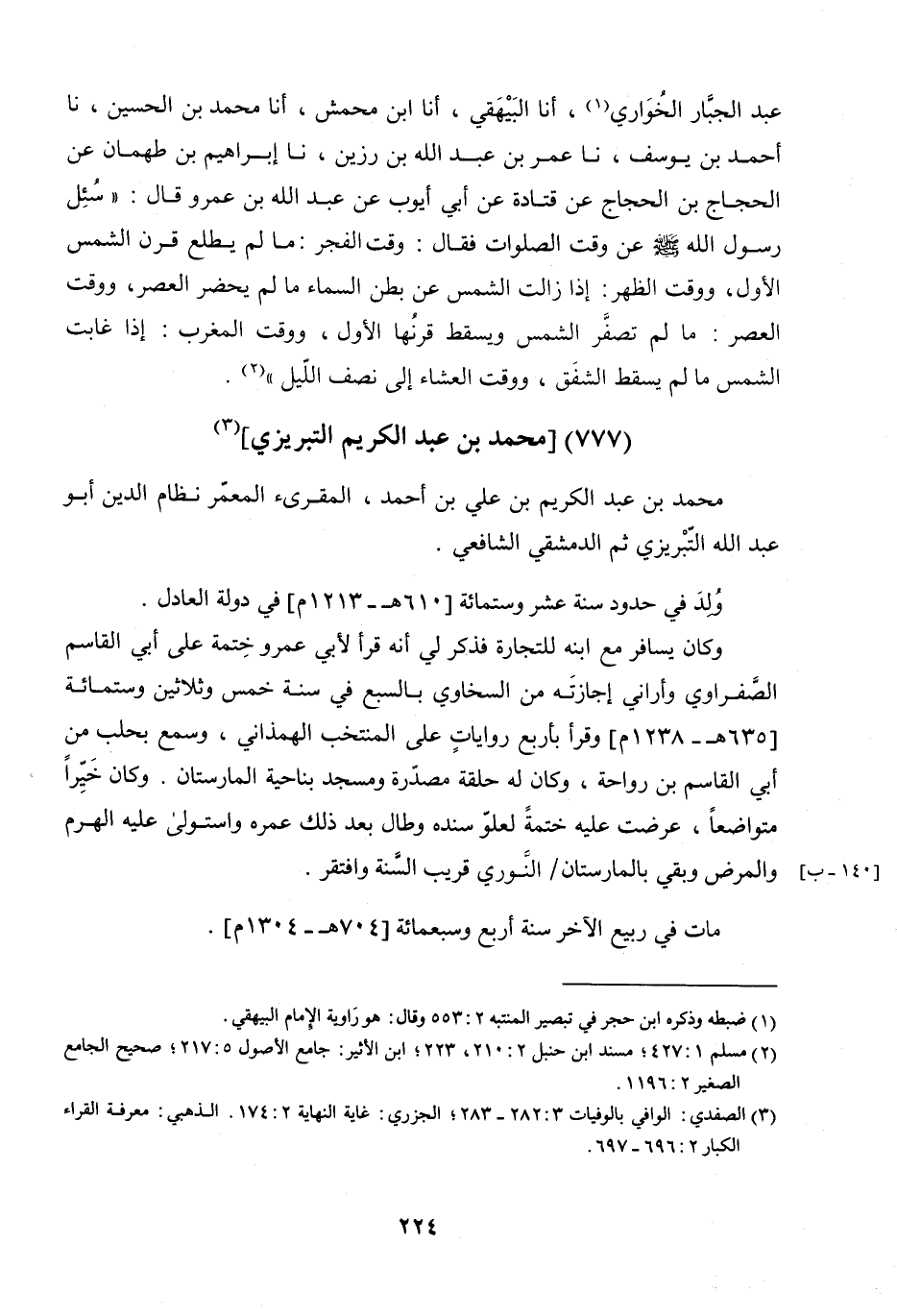 مُحَمَّدُ بْنُ عَبْدِ الْكَرِيمِ بْنِ عَلِيِّ بْنِ أَحْمَدَ الْمُقْرِئُ الْمُعَمَّرُ نِظَامُ الدِّينِ أَبُو عَبْدِ اللَّهِ التِّبْرِيزِيُّ ثُمَّ الدِّمَشْقِيُّ الشَّافِعِيُّ