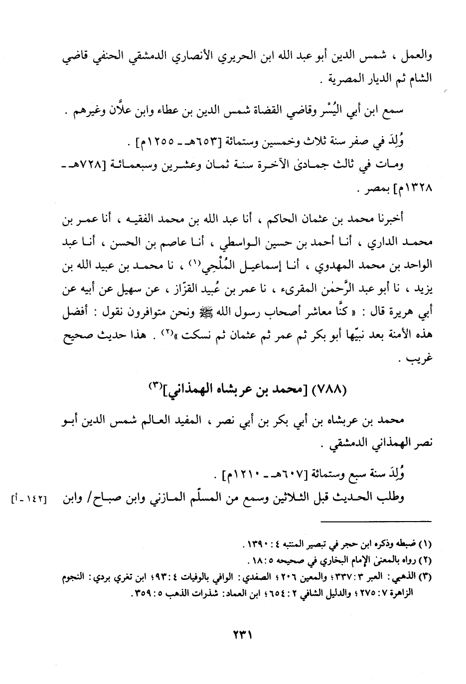 وَالْعَمَلِ، شَمْسُ الدِّينِ أَبُو عَبْدِ اللَّهِ ابْنُ الْحَرِيرِيِّ الأَنْصَارِيُّ الدِّمَشْقِيُّ الْحَنَفِيُّ