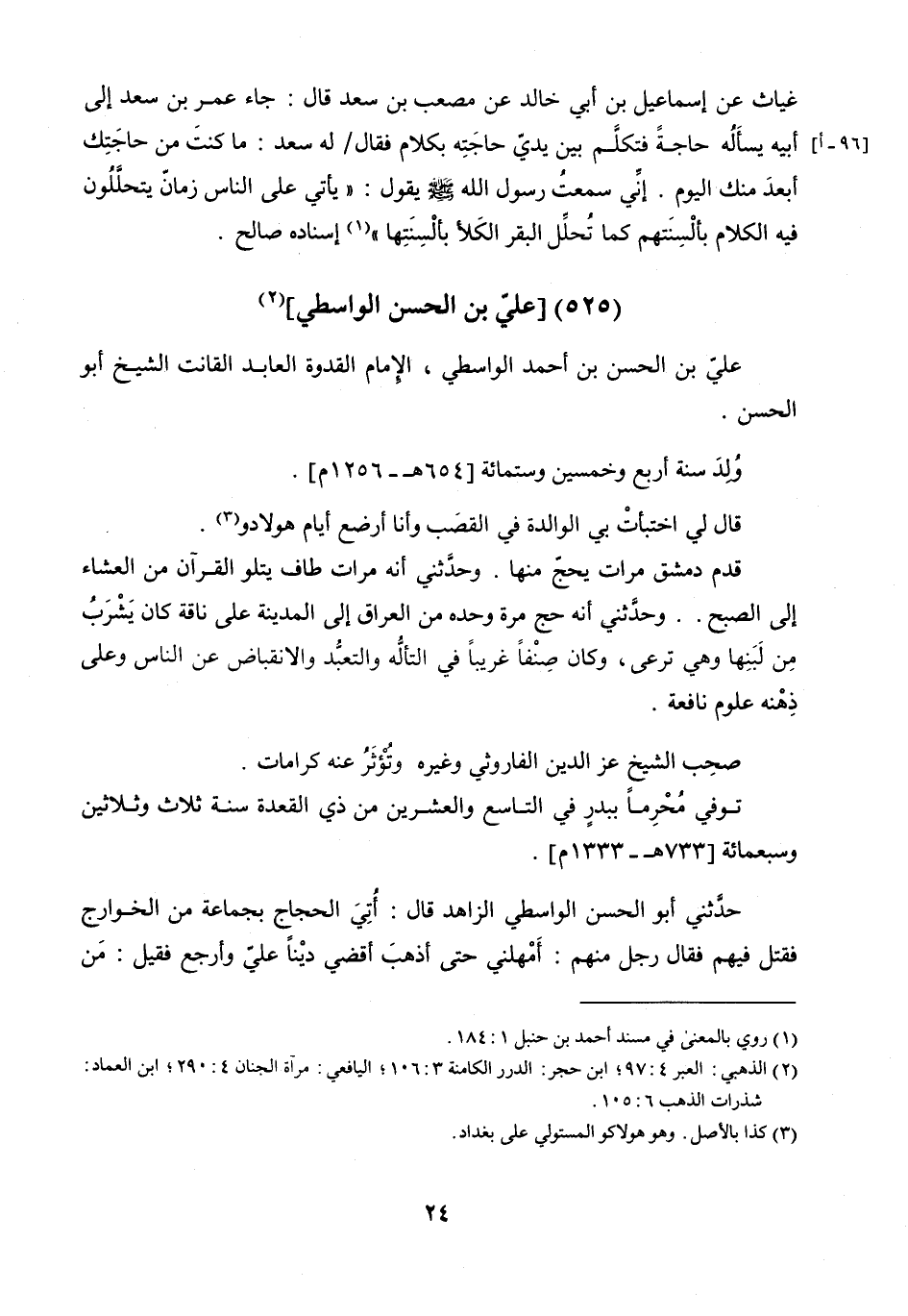 عَلِيُّ بْنُ الْحَسَنِ بْنِ أَحْمَدَ الْوَاسِطِيُّ الإِمَامُ الْقُدْوَةُ الْعَابِدُ الْقَانِتُ الشَّيْخُ أَبُو الْحَسَنِ