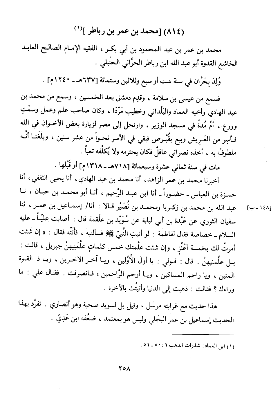 مُحَمَّدُ بْنُ عُمَرَ بْنِ عَبْدِ الْمَحْمُودِ بْنِ أَبِي بَكْرٍ الْفَقِيهُ الإِمَامُ الصَّالِحُ الْعَابِدُ الْخَاشِعُ الْقُدْوَةُ أَبُو عَبْدِ اللَّهِ بْنُ رباطر الْحَرَّانِيُّ الْحَنْبَلِيُّ