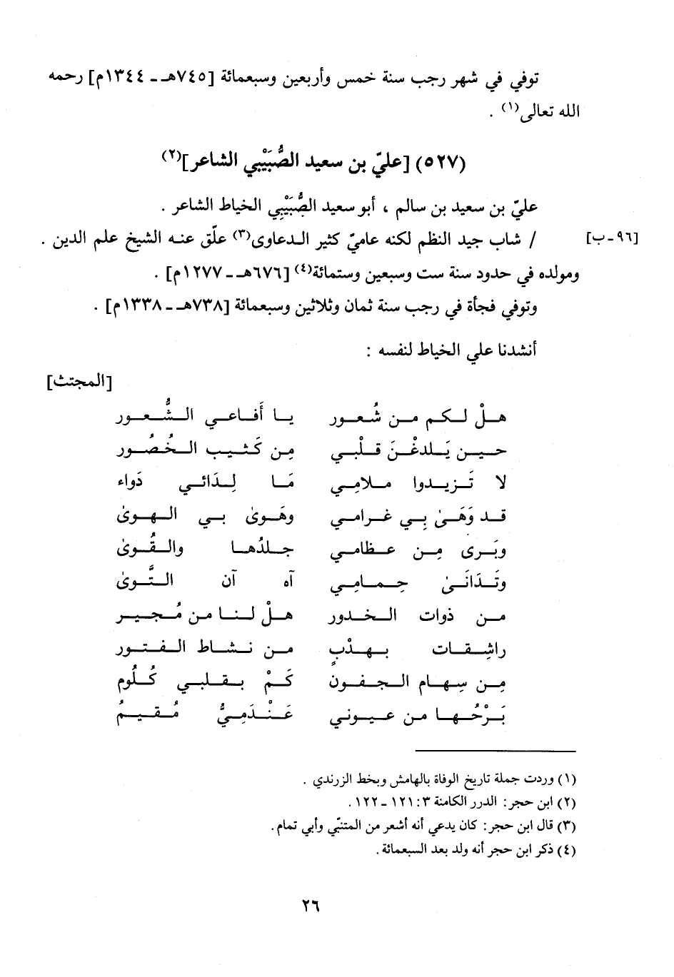 شَابٌّ جَيِّدُ النَّظْمِ لَكِنَّهُ عَامِيٌّ كَثِيرُ الدَّعَاوِي، عَلَّقَ عَنْهُ الشَّيْخُ عَلَمُ الدِّينِ، وَمَوْلِدُهُ فِي حُدُودِ سَنَةِ سِتٍّ وَسَبْعِينَ وَسِتِّ مِائَةٍ.