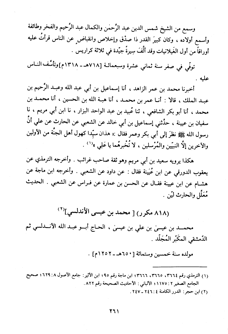 مُحَمَّدُ بْنُ عِيسَى بْنِ عَلِيِّ بْنِ عِيسَى الْحَاجُّ أَبُو عَبْدِ اللَّهِ الأَنْدَلُسِيُّ ثُمَّ الدِّمَشْقِيُّ الْمُكَبِّرُ الْمُجَلِّدُ
