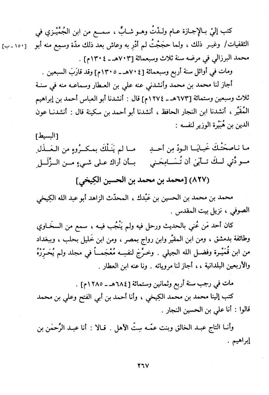 أَجَازَ لَنَا مُحَمَّدُ بْنُ مُحَمَّدٍ، وَأَنْشَدَنِي عَنْهُ عَلِيُّ بْنُ الْعَطَّارِ، وَسَمَاعُهُ مِنْهُ فِي سَنَةِ ثَلاثٍ وَسَبْعِينَ وَسِتِّ مِائَةٍ، قَالَ: أَنْشَدَنَا أَبُو الْعَبَّاسِ أَحْمَدُ بْنُ إِبْرَاهِيمَ الْمُقَيَّرُ، أَنْشَدَنَا ابْنُ النَّجَّارِ الْحَافِظُ، أَنْشَدَنَا أَبُو أَحْمَدَ بْنُ سَكِينَةَ، قَالَ: أَنْشَدَنَا عَوْنُ الدِّينِ بْنُ هُبَيْرَةَ الْوَزِيرُ لِنَفْسِهِ: