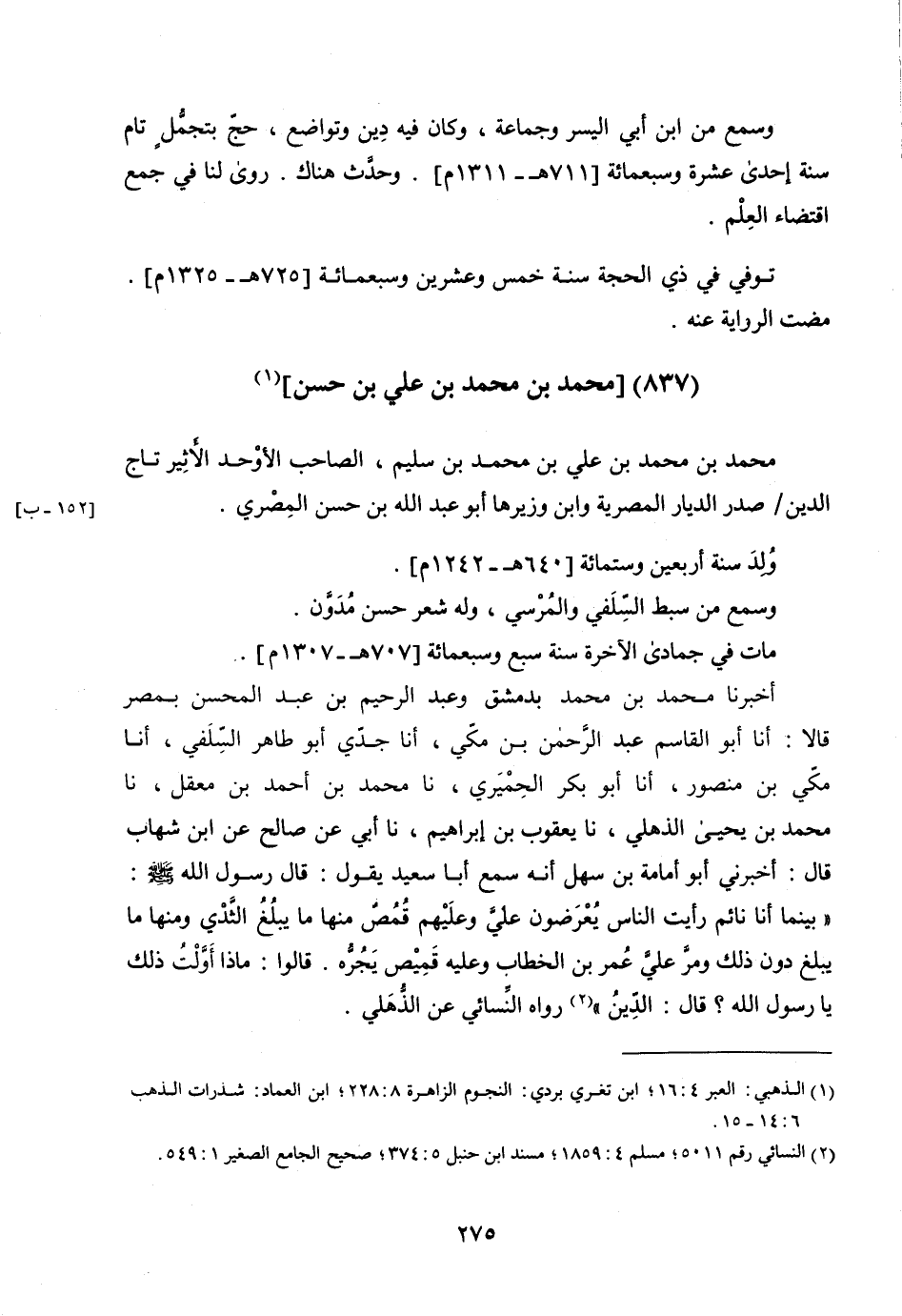 مُحَمَّدُ بْنُ مُحَمَّدِ بْنِ عَلِيِّ بْنِ مُحَمَّدِ بْنِ سُلَيْمٍ الصَّاحِبُ الأَوْحَدُ الأَثِيرُ تَاجُ الدِّينِ صَدْرُ الدِّيَارِ الْمِصْرِيَّةِ وَابْنُ وَزِيرِهَا أَبُو عَبْدِ اللَّهِ بْنُ حَسَنٍ الْمِصْرِيُّ
