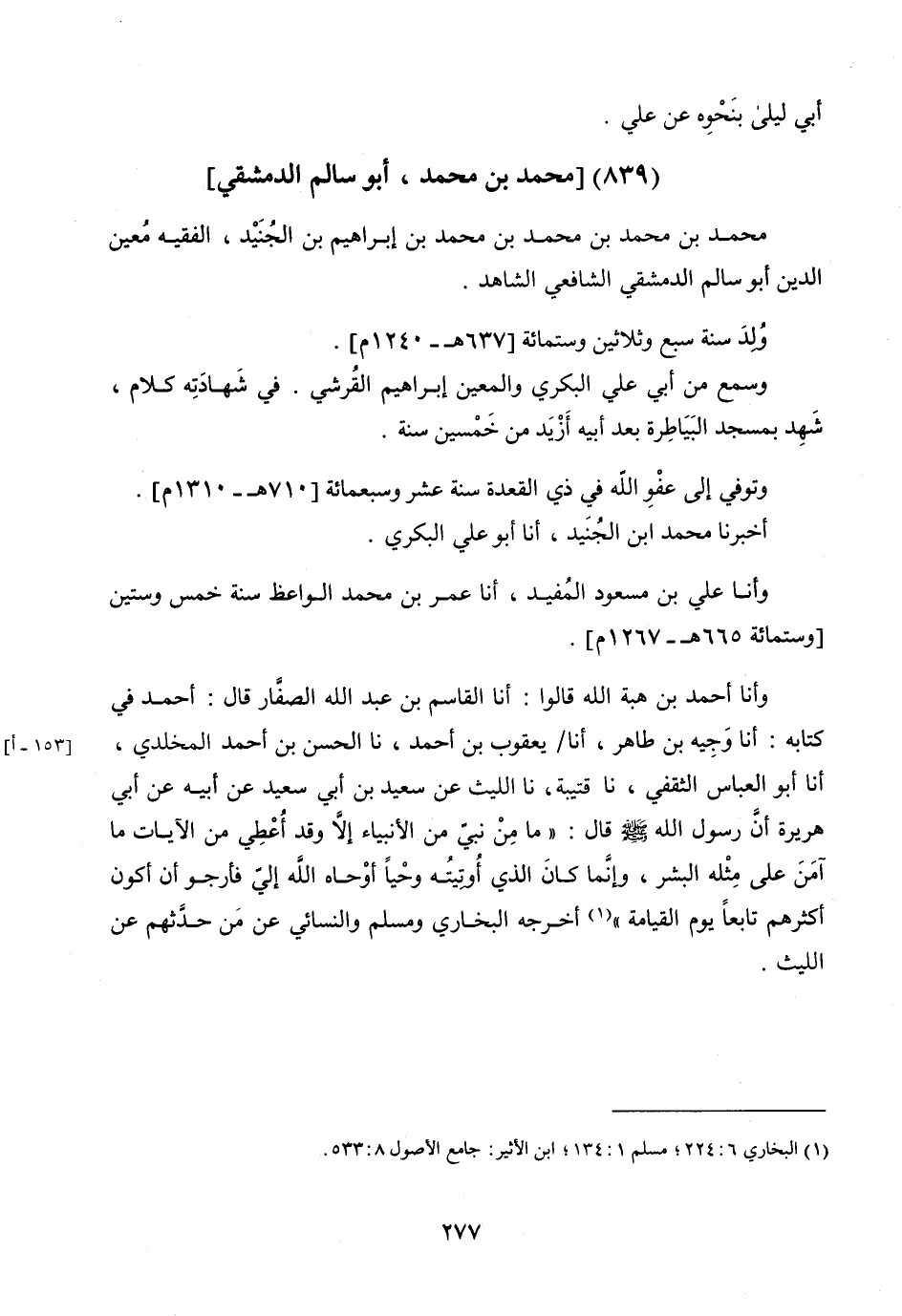 مُحَمَّدُ بْنُ مُحَمَّدِ بْنِ مُحَمَّدِ بْنِ مُحَمَّدِ بْنِ إِبْرَاهِيمَ بْنِ الْجُنَيْدِ الْفَقِيهُ مُعِينُ الدِّينِ أَبُو سَالِمٍ الدِّمَشْقِيُّ الشَّافِعِيُّ الشَّاهِدُ