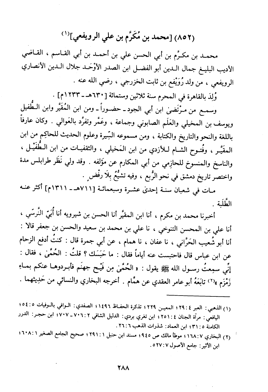 مُحَمَّدُ بْنُ مُكْرَمِ بْنِ أَبِي الْحَسَنِ عَلِيِّ بْنِ أَحْمَدَ بْنِ أَبِي الْقَاسِمِ الْقَاضِي الأَدِيبُ الْبَلِيغُ جَمَالُ الدِّينِ أَبُو الْفَضْلِ ابْنُ الصَّدْرِ الأَوْحَدِ جَلالُ الدِّينِ الأَنْصَارِيُّ الرُّوَيْفِعِيُّ