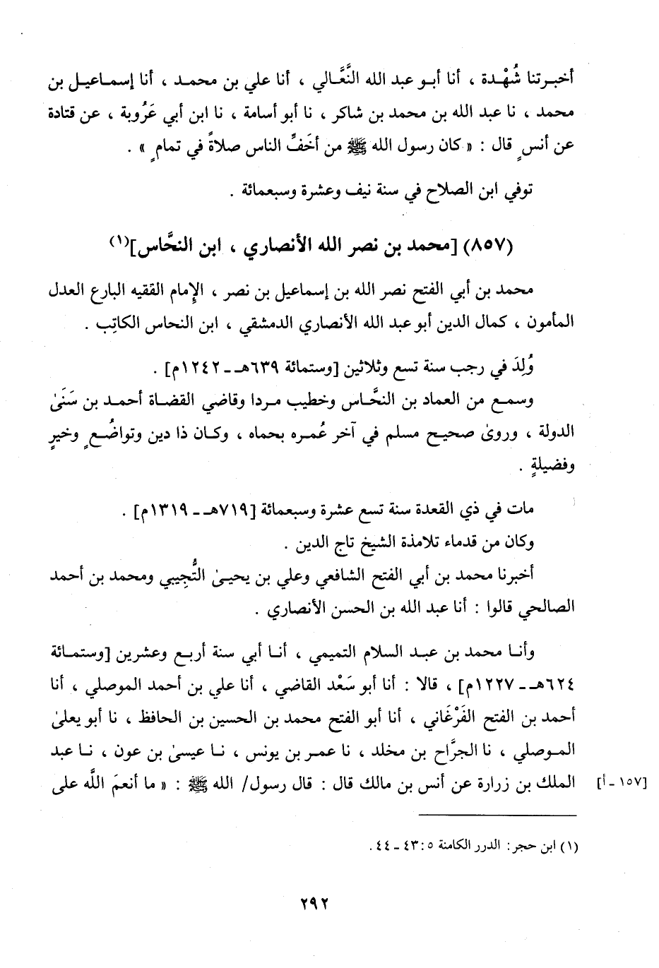 مُحَمَّدُ بْنُ أَبِي الْفَتْحِ نَصْرِ اللَّهِ بْنِ إِسْمَاعِيلَ بْنِ نَصْرٍ الإِمَامُ الْفَقِيهُ الْبَارِعُ الْعَدْلُ الْمَأْمُونُ كَمَالُ الدِّينِ أَبُو عَبْدِ اللَّهِ الأَنْصَارِيُّ الدِّمَشْقِيُّ ابْنُ النَّحَّاسِ الْكَاتِبُ
