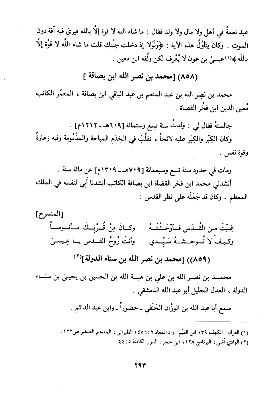 مُحَمَّدُ بْنُ نَصْرِ اللَّهِ بْنِ عَلِيِّ بْنِ هِبَةِ اللَّهِ بْنِ الْحُسَيْنِ بْنِ يَحْيَى بْنِ سَنَاءِ الدَّوْلَةِ الْعَدْلُ الْجَلِيلُ أَبُو عَبْدِ اللَّهِ الدِّمَشْقِيُّ