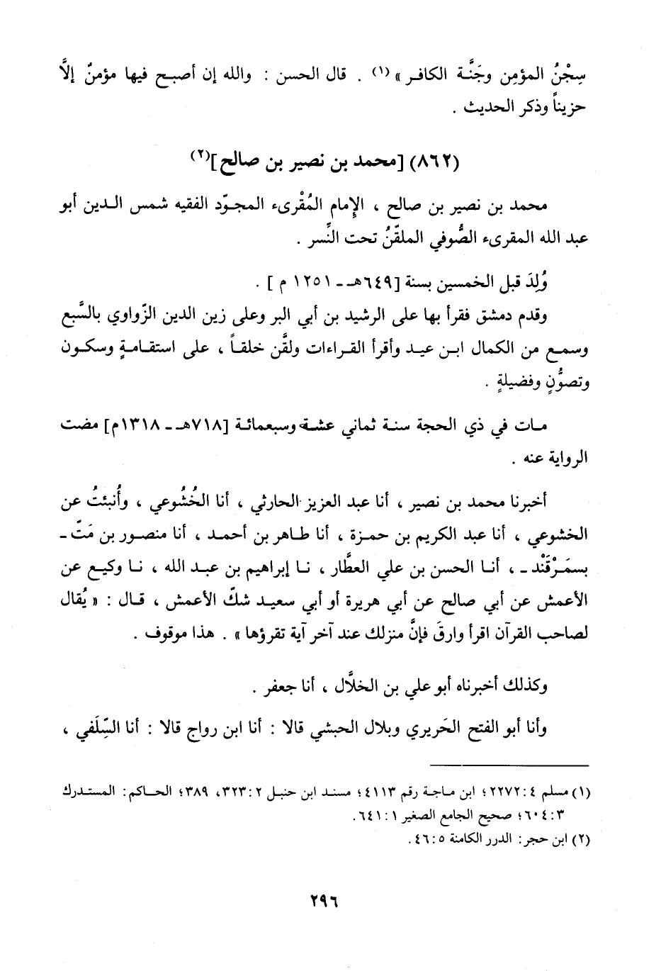 مُحَمَّدُ بْنُ نُصَيْرِ بْنِ الصَّالِحِ الإِمَامُ الْمُقْرِئُ الْمُجَوِّدُ الْفَقِيهُ شَمْسُ الدِّينِ أَبُو عَبْدِ اللَّهِ الْمُقْرِئُ الصُّوفِيُّ الْمُلَقِّنُ تَحْتَ النِّسْرِ