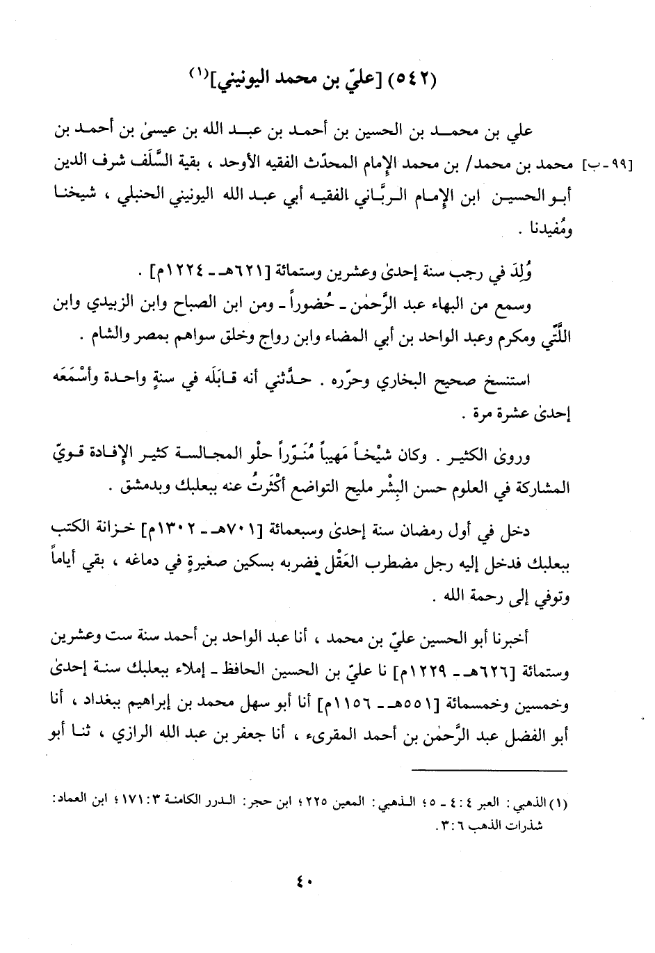 عَلِيُّ بْنُ مُحَمَّدِ بْنِ الْحُسَيْنِ بْنِ أَحْمَدَ بْنِ عَبْدِ اللَّهِ بْنِ عِيسَى بْنِ أَحْمَدَ بْنِ مُحَمَّدِ بْنِ مُحَمَّدِ بْنِ مُحَمَّدٍ الإِمَامُ الْمُحَدِّثُ الْفَقِيهُ الأَوْحَدُ بَقِيَّةُ السَّلَفِ شَرَفُ الدِّينِ أَبُو الْحُسَيْنِ أَبُو الإِمَامِ الرَّبَّانِيُّ الْفَقِيهُ أَبِي عَبْدِ اللَّهِ الْيُونِينِيِّ الْحَنْبَلِيِّ