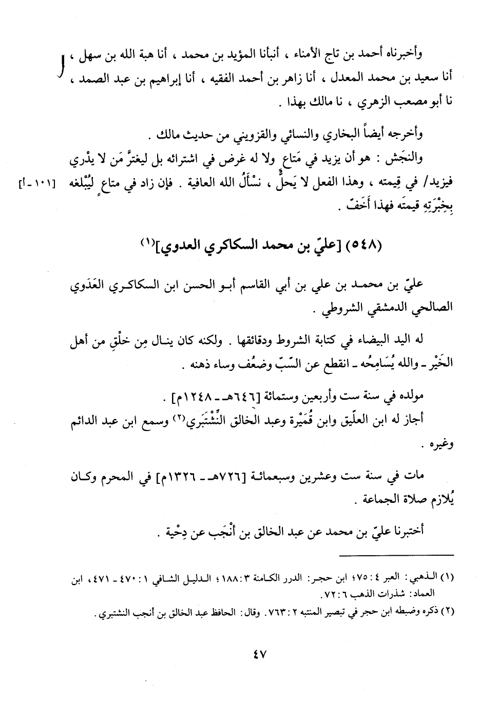 عَلِيُّ بْنُ مُحَمَّدِ بْنِ عَلِيِّ بْنِ أَبِي الْقَاسِمِ أَبُو الْحَسَنِ بْنُ السَّكَاكَرِيِّ الْعَدَوِيُّ الصَّالِحِيُّ الدِّمَشْقِيُّ الشُّرُوطِيُّ