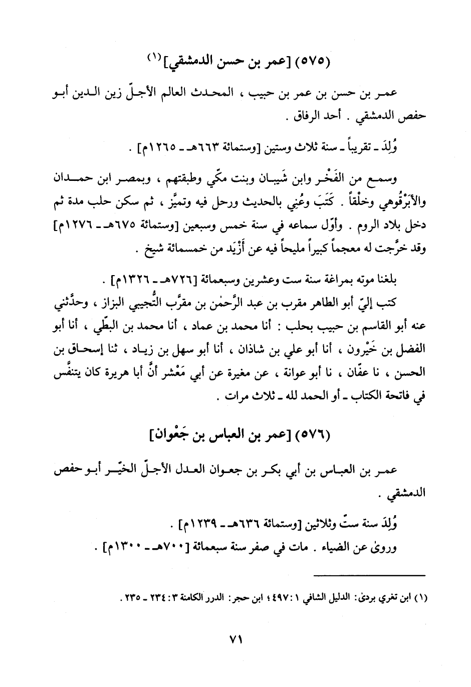عُمَرُ بْنُ حَسَنِ بْنِ عُمَرَ بْنِ حَبِيبٍ الْمُحَدِّثُ الْعَالِمُ الأَجَلُّ زَيْنُ الدِّينِ أَبُو حَفْصٍ الدِّمَشْقِيُّ أَحَدُ الرِّفَاقِ
