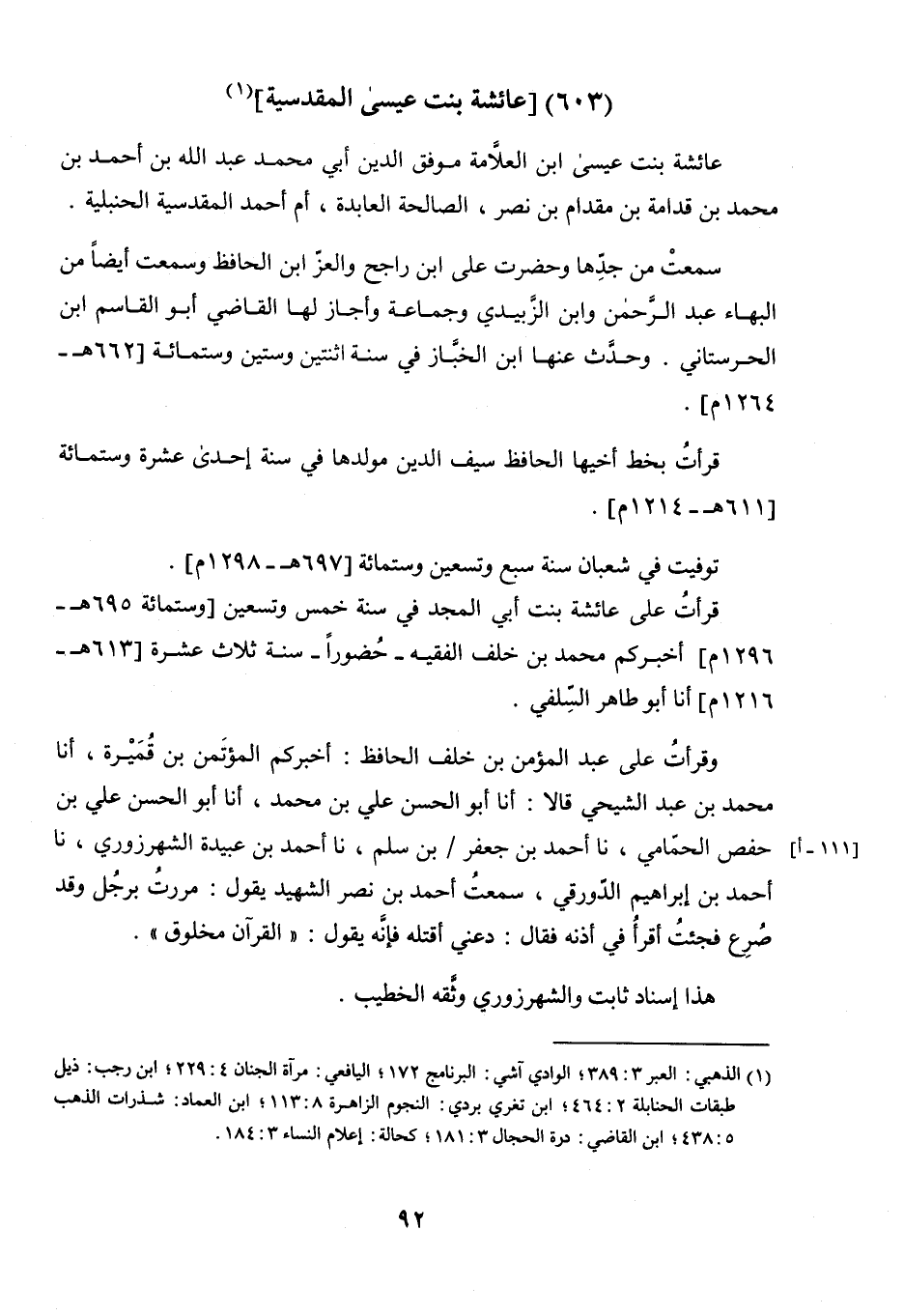 عَائِشَةُ بِنْتُ عِيسَى ابْنِ الْعَلامَةِ مُوَفَّقِ الدِّينِ أَبِي مُحَمَّدٍ عَبْدِ اللَّهِ بْنِ أَحْمَدَ بْنِ مُحَمَّدِ بْنِ قُدَامَةَ بْنِ مِقْدَامِ بْنِ نَصْرٍ الصَّالِحَةُ الْعَابِدَةُ أُمُّ أَحْمَدَ الْمَقْدِسِيَّةُ الْحَنْبَلِيَّةُ