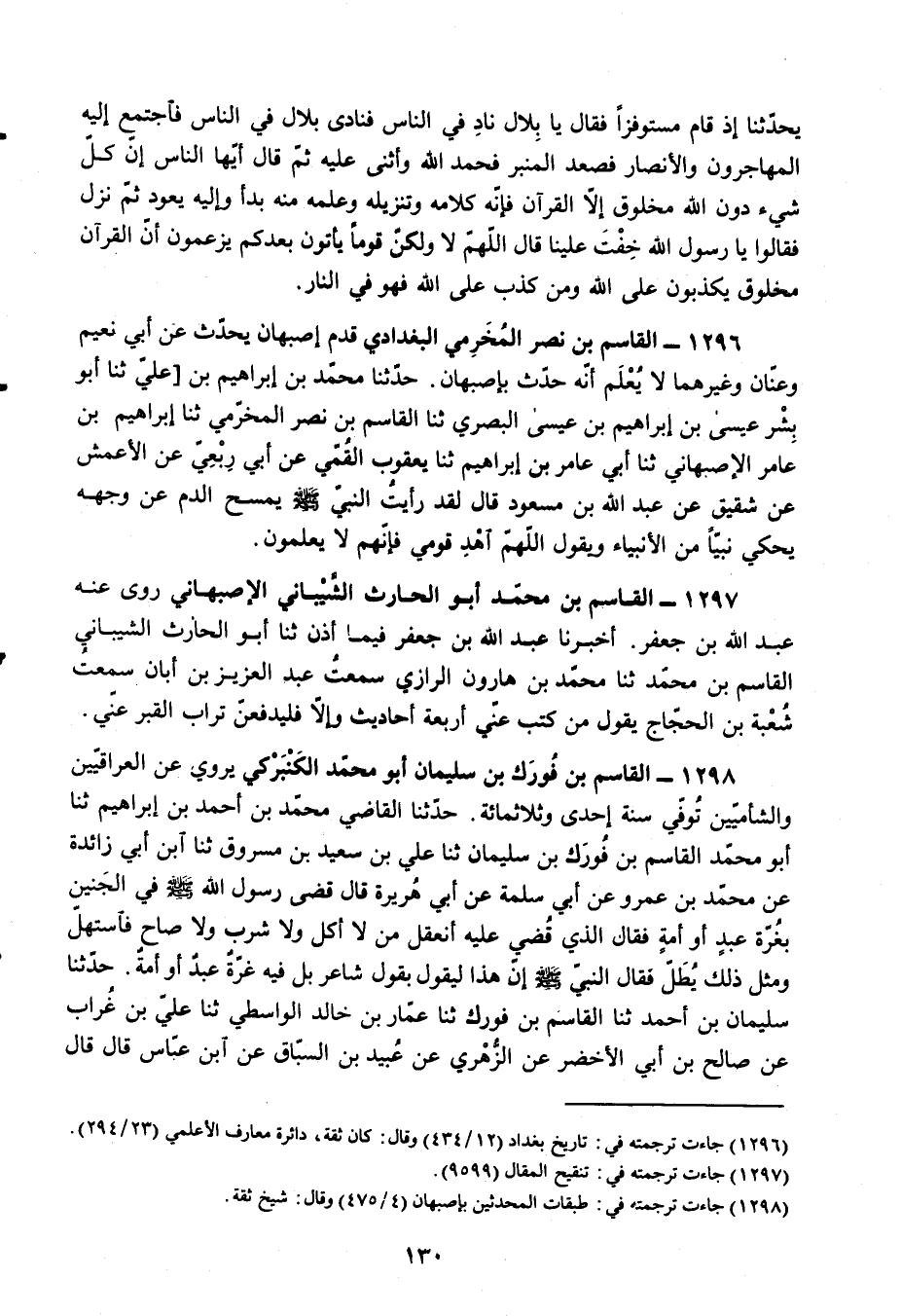 §1296 - الْقَاسِمُ بْنُ نَصْرِ الْمُخَرِّمِيُّ الْبَغْدَادِيُّ قَدِمَ أَصْبَهَانَ يُحَدِّثُّ عَنْ أَبِي نُعَيْمٍ، وَعَفَّانَ، وَغَيْرِهِمَا، لَا يُعْلَمُ أَنَّهُ حَدَّثَ بأَصْبَهَانَ