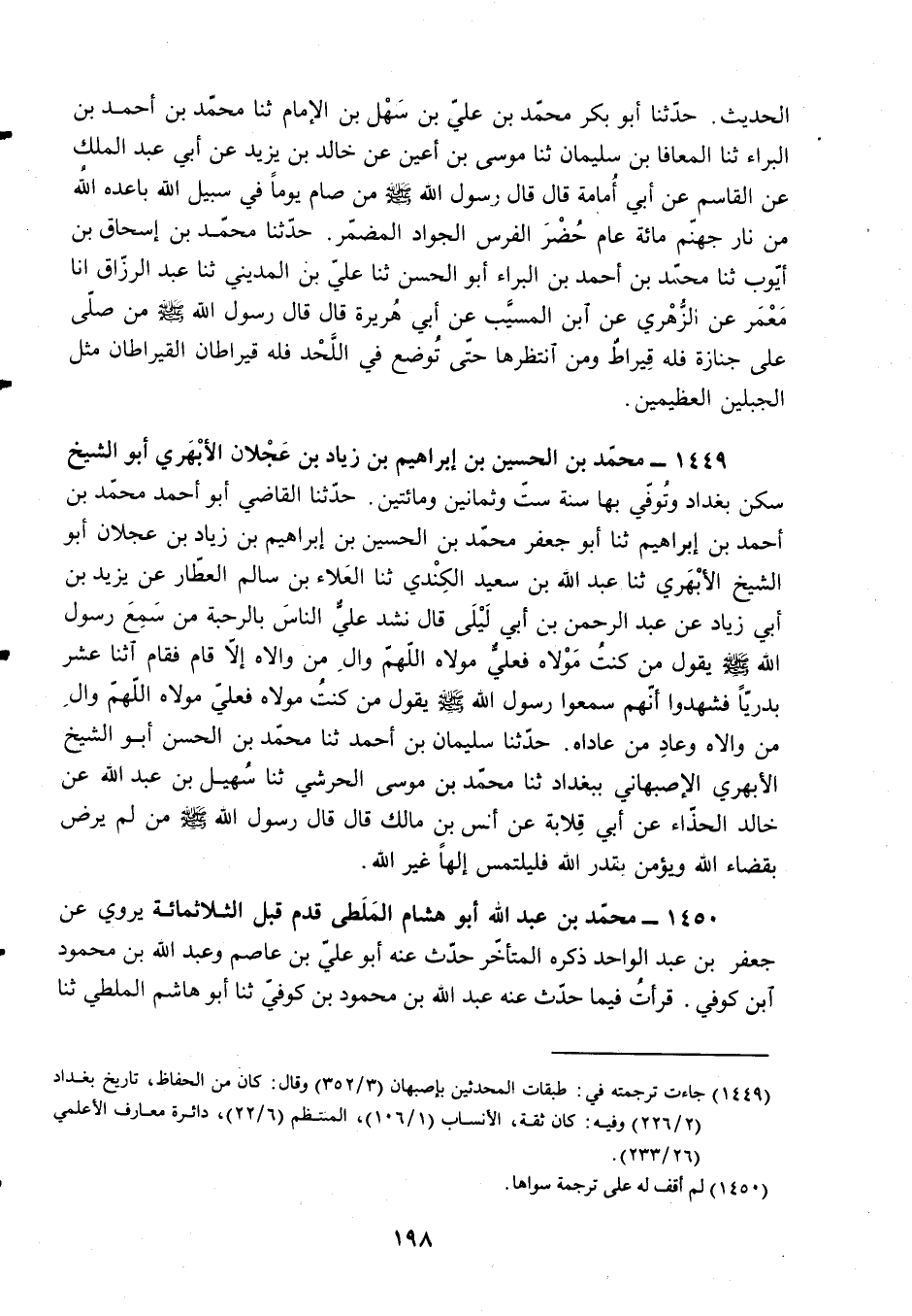 1449 - مُحَمَّدُ بْنُ الْحُسَيْنِ بْنِ إِبْرَاهِيمَ بْنِ زِيَادِ بْنِ عَجْلانَ الأَبْهَرِيُّ أَبُو الشَّيْخ