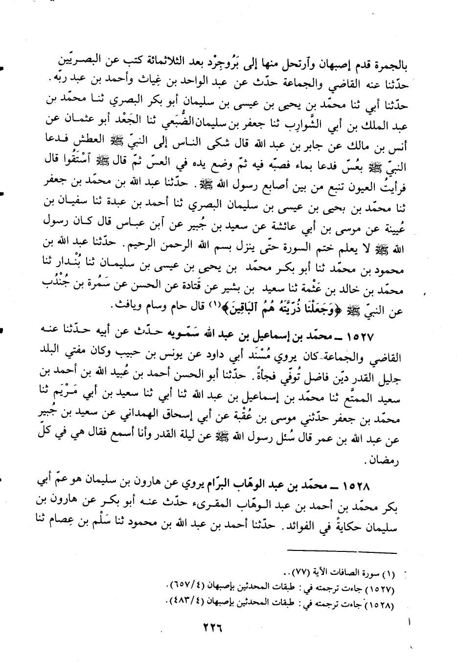 حَدَّثَنَا عَبْدُ اللَّهِ بْنُ مُحَمَّدِ بْنِ جَعْفَرٍ، ثنا مُحَمَّدُ بْنُ يَحْيَى بْنِ عِيسَى بْنِ سُلَيْمَانَ الْبَصْرِيُّ، ثنا أَحْمَدُ بْنُ عَبْدَةَ، ثنا سُفْيَانُ بْنُ عُيَيْنَةَ، عَنْ مُوسَى بْنِ أَبِي عَائِشَةَ، عَنْ سَعِيدِ بْنِ جُبَيْرٍ، عَنِ ابْنِ عَبَّاسٍ قَالَ: «كَانَ رَسُولُ اللَّهِ صَلَّى اللهُ عَلَيْهِ وَسَلَّمَ §لَا يَعْلَمُ خَتْمَ السُّورَةِ حَتَّى يَنْزِلَ (بِسْمِ اللَّهِ الرَّحْمَنِ الرَّحِيمِ) »