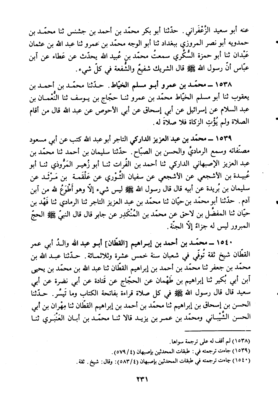 §1540 - مُحَمَّدُ بْنُ أَحْمَدَ بْنِ إِبْرَاهِيمَ الْقَطَّانُ أَبُو عَبْدِ اللَّهِ وَالِدُ أَبِي عُمَرَ الْقَطَّانِ شَيْخٌ ثِقَةٌ، تُوُفِّيَ فِي شَعْبَانَ سَنَةَ خَمْسَ عَشْرَةَ وَثَلَاثِمِائَةٍ