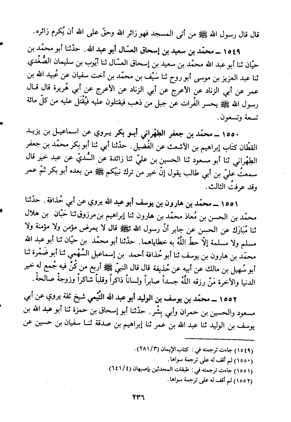 §1551 - مُحَمَّدُ بْنُ هَارُونَ بْنِ يُوسُفَ أَبُو عَبْدِ اللَّهِ يَرْوِي عَنْ أَبِي حُذَافَةَ