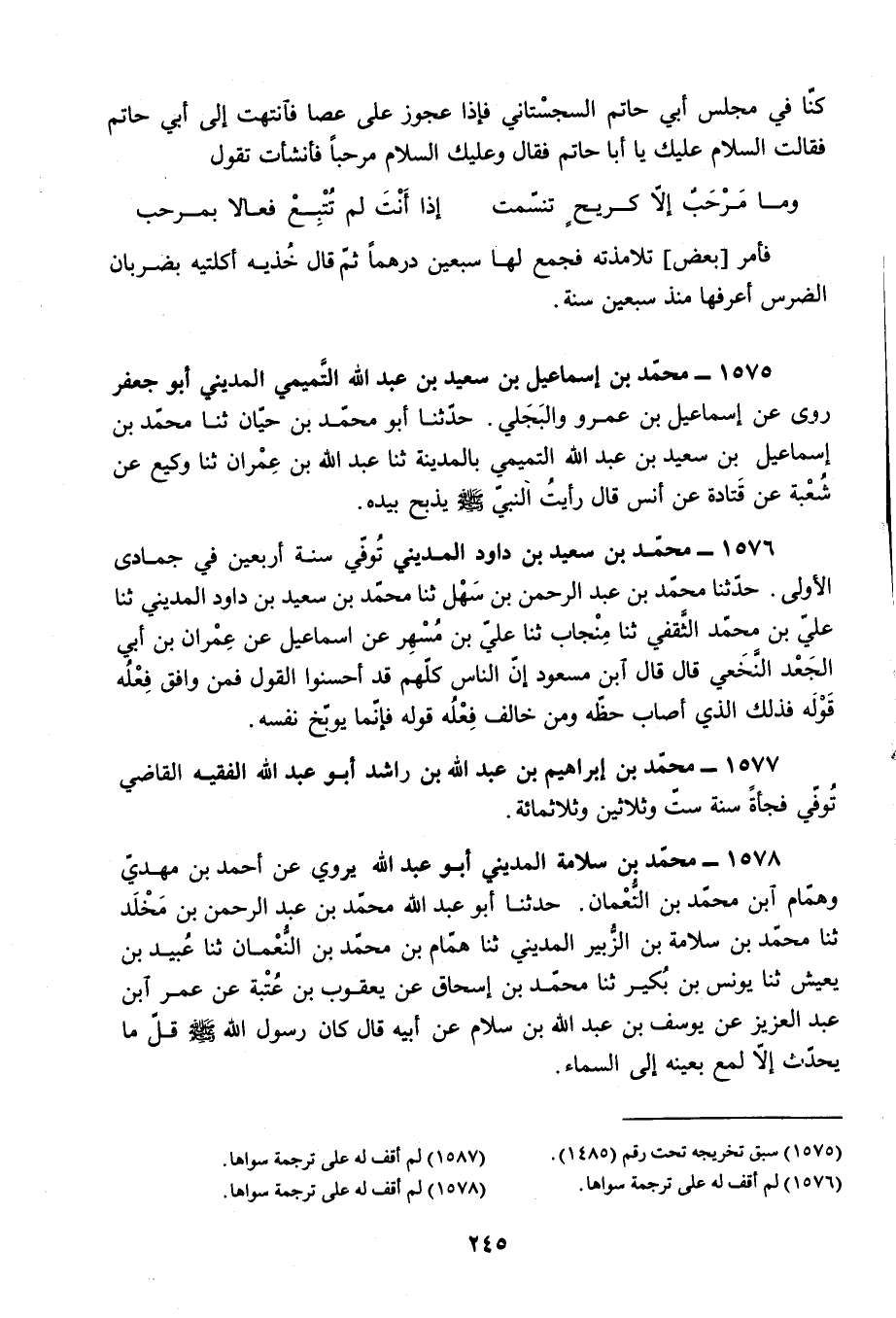 §1577 - مُحَمَّدُ بْنُ إِبْرَاهِيمَ بْنِ عَبْدِ اللَّهِ بْنِ رَاشِدٍ أَبُو عَبْدِ اللَّهِ الْفَقِيهُ الْقَاضِي تُوُفِّيَ فَجْأَةً سَنَةَ سِتٍّ وَثَلَاثِينَ وَثَلَاثِمِائَةٍ